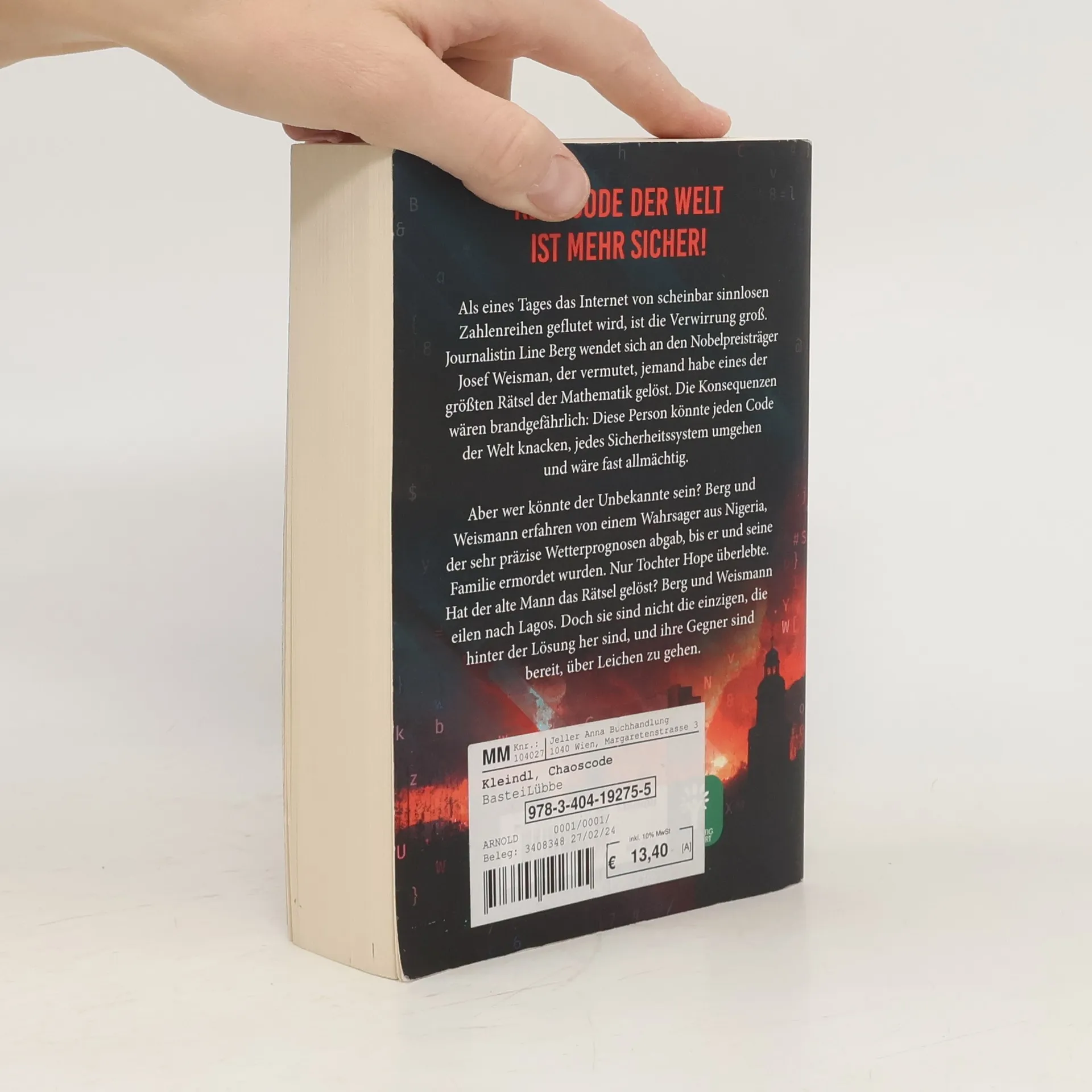 Kein Code der Welt ist mehr sicher! Als eines Tages das Internet von scheinbar sinnlosen Zahlenreihen geflutet wird, ist die Verwirrung groß. Journalistin Line Berg wendet sich an den Nobelpreisträger Josef Weisman, der vermutet, jemand habe eines der größten Rätsel der Mathematik gelöst. Die Konsequenzen wären brandgefährlich: Diese Person könnte jeden Code der Welt knacken, jedes Sicherheitssystem umgehen und wäre fast allmächtig. Aber wer könnte der Unbekannte sein? Berg und Weismann erfahren von einem Wahrsager aus Nigeria, der sehr präzise Wetterprognosen abgab, bis er und seine Familie ermordet wurden. Nur Tochter Hope überlebte. Hat der alte Mann das Rätsel gelöst? Berg und Weismann eilen nach Lagos. Doch sie sind nicht die einzigen, die hinter der Lösung her sind, und ihre Gegner sind bereit, über Leichen zu gehen.