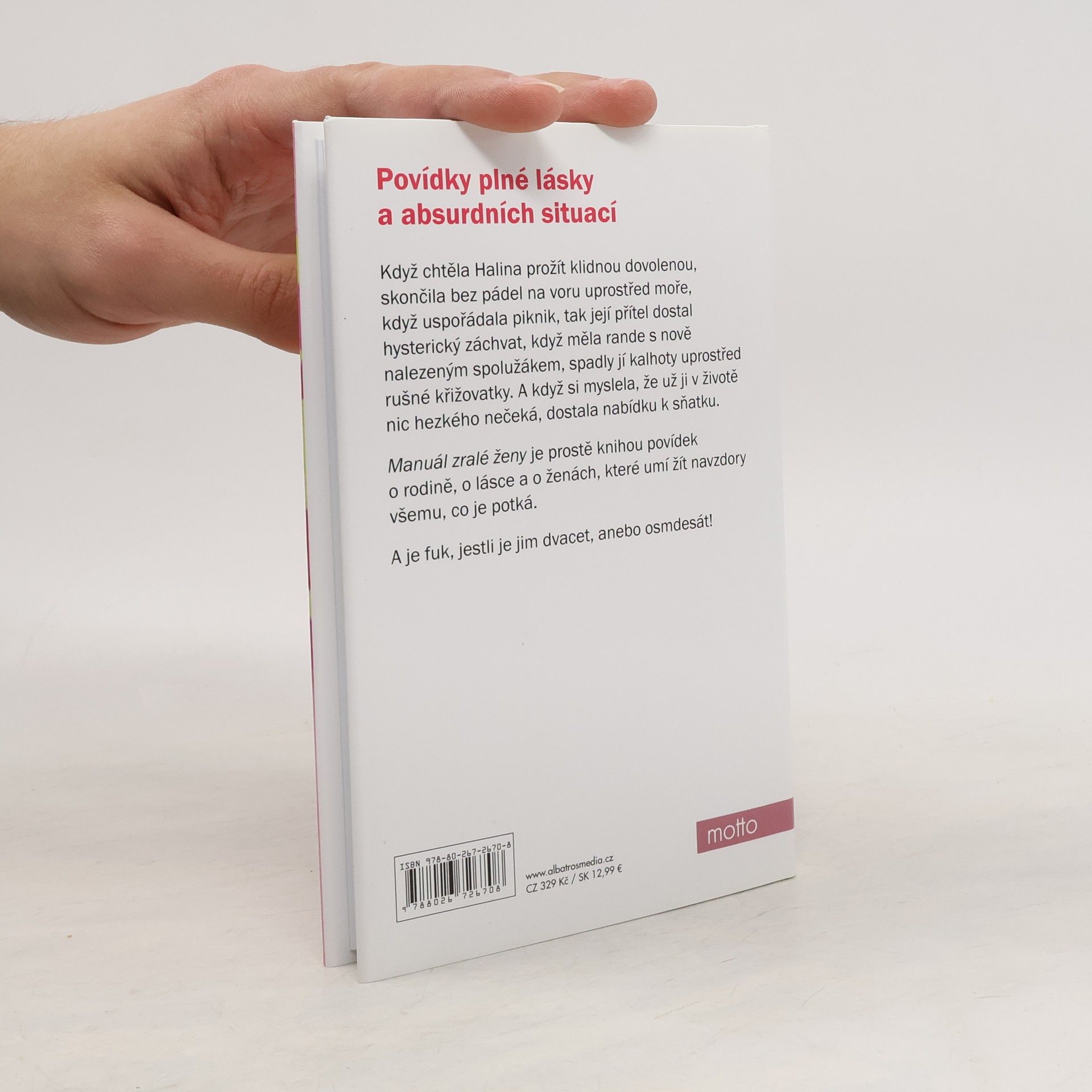 Když chtěla Halina prožít klidnou dovolenou, skončila bez pádel na voru uprostřed moře, když uspořádala piknik, její přítel dostal hysterický záchvat, když měla rande s nově nalezeným spolužákem, spadly jí kalhoty uprostřed rušné křižovatky. A když si myslela, že už jí v životě nic hezkého nečeká, dostala nabídku k sňatku. Manuál zralé ženy je veselou knihou povídek o rodině, lásce a o ženách, které umí žít navzdory tomu všemu blbému, co je potká. A upřímně řečeno - je fuk, jestli jim dvacet anebo osmdesát!