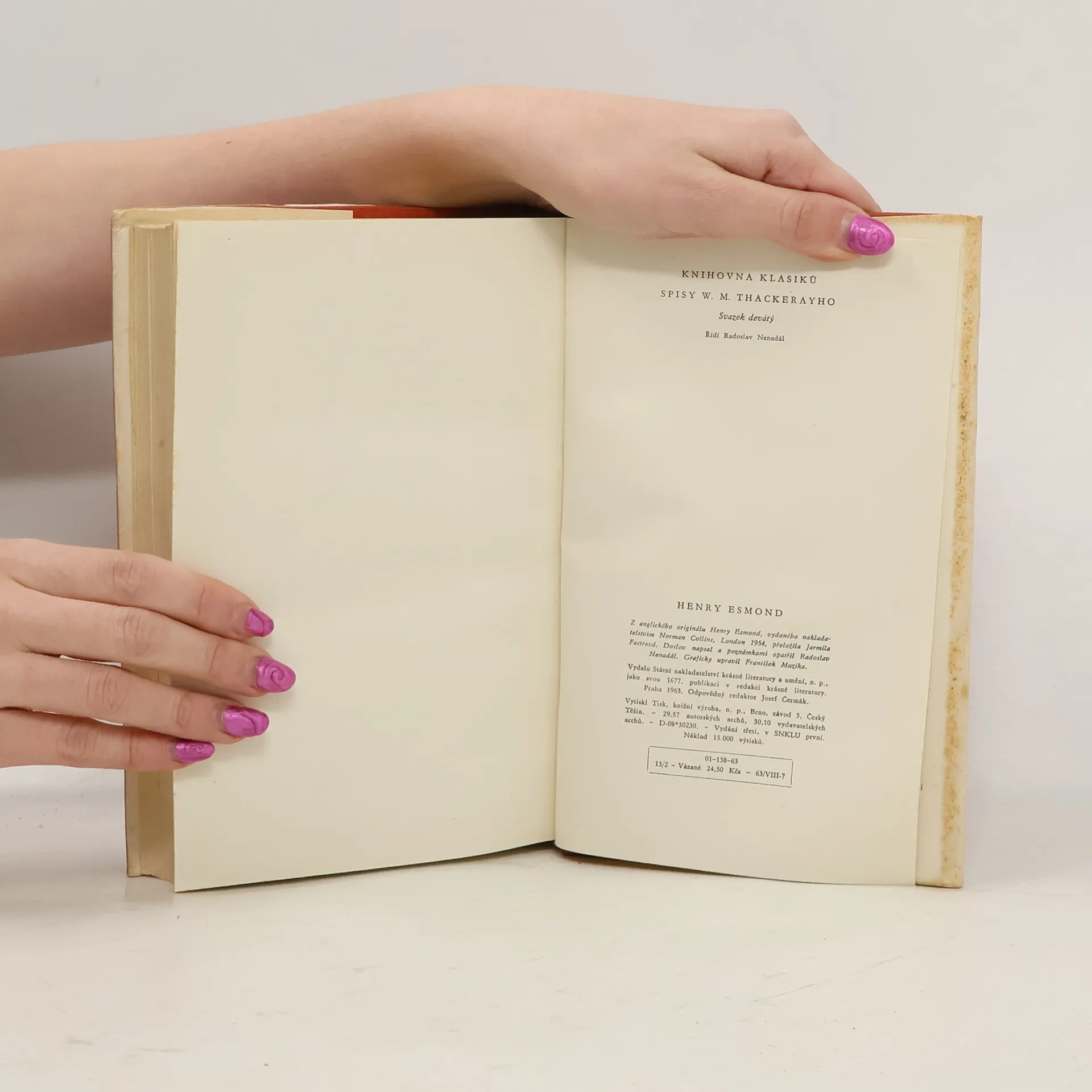 Moderně koncipovaný román anglického klasika z r. 1852 zaujme i dnes ještě poutající a ve své době velmi smělou zápletkou lásky starší ženy k mladšímu muži a ještě více ostrou kresbou charakterů hrdinů i výstižným zobrazením jeviště, Anglie doby Viléma III. Oranžského (1688-1702) akrálovny Anny (1702-1714).