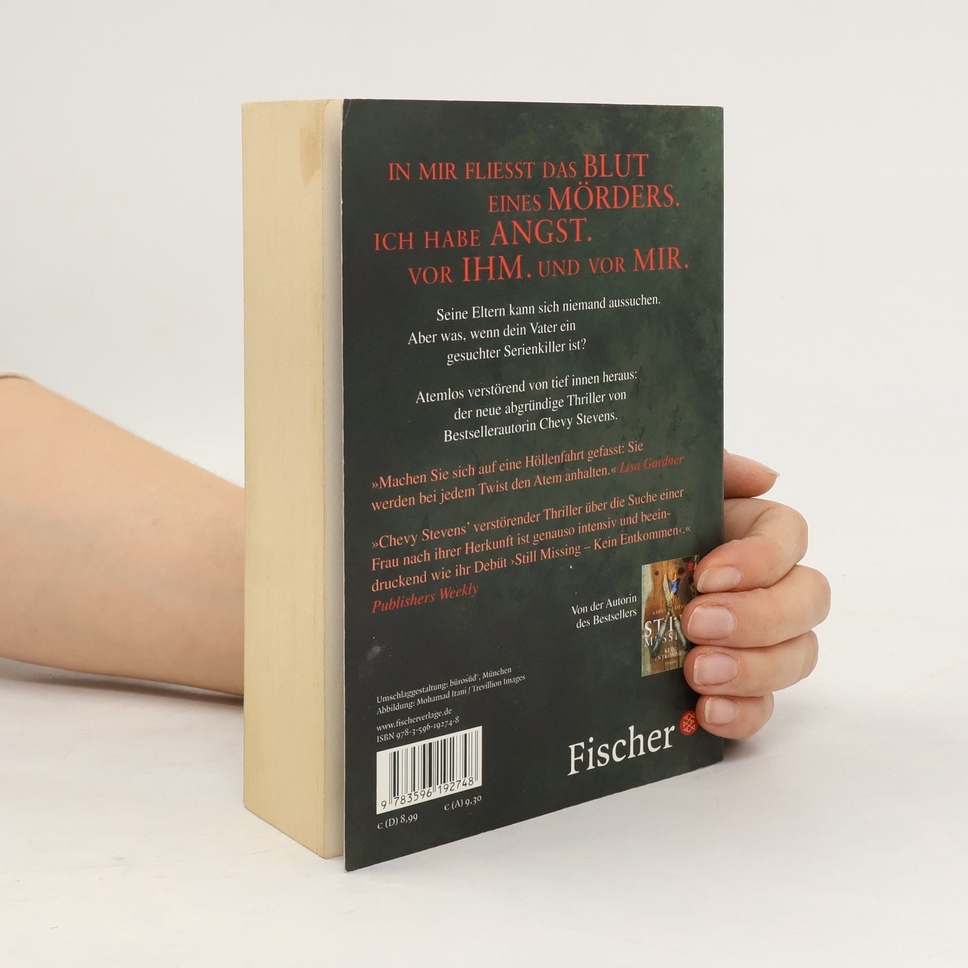 Was ist schlimmer, als zu erfahren, dass dein Vater ein Serienmörder ist? Dass er von dir erfährt ... »In mir fließt das Blut eines Mörders. Ich habe Angst. Vor ihm. Und vor mir.« Seine Eltern kann sich niemand aussuchen. Aber was, wenn dein Vater ein gesuchter Serienkiller ist? Die adoptierte Sara lebt im idyllischen Städtchen Nanaimo auf Vancouver Island am Ozean. Sie hat sich immer gefragt, wer wohl ihre richtigen Eltern sind. Als ihre eigene Hochzeit bevorsteht, macht sie sich auf die Suche. Doch ihre leibliche Mutter verweigert schockiert den Kontakt. Verstört forscht Sara weiter und findet etwas Unfassbares heraus: Ihr leiblicher Vater ist ein berüchtigter Serienmörder. Sara versucht, mit ihren Ängsten fertigzuwerden: Hat sie mehr von ihrem Vater geerbt, als sie sich eingestehen will? Doch bald wird klar, dass es Schlimmeres gibt, als zu erfahren, dass dein Vater ein Killer ist – nämlich, dass er von dir erfährt … »Die Story raubt einem wirklich den Schlaf. Amerikas neue Thriller-Queen Chevy Stevens schreibt so packend, dass wir Saras Empfindungen regelrecht mitfühlen. Raffiniert bis zum letzten Blutstropfen.« Für Sie »Chevy Stevens' verstörender Thriller über die Suche einer Frau nach ihrer Herkunft ist genauso intensiv und beeindruckend wie ihr Debüt ›Still Missing – Kein Entkommen‹.« Publishers Weekly Top-Spannung made in Kanada. Von der internationalen Thriller-Bestseller-Autorin Chevy Stevens.