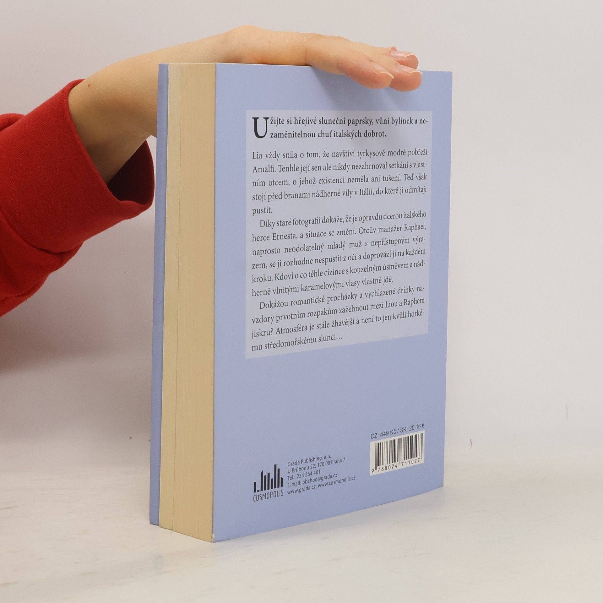 Lia vždy snila o tom, že navštíví tyrkysově modré pobřeží Amalfi. Tenhle její sen ale nikdy nezahrnoval setkání s vlastním otcem, o jehož existenci neměla ani tušení. Teď však stojí před branami nádherné vily v Itálii, do které ji odmítají pustit. Díky staré fotografii dokáže,že je opravdu dcerou italského herce Ernesta, a situace se změní. Otcův manažer Raphael, naprosto neodolatelný mladý muž s nepřístupným výrazem, se ji rozhodne nespustit z očí a doprovází ji na každém kroku. Kdoví o co téhle cizince s kouzelným úsměvem a nádherně vlnitými karamelovými vlasy vlastně jde. Dokážou romantické procházky a vychlazené drinky i přes počáteční rozpaky zažehnout mezi Liou a Raphem jiskru? Atmosféra je stále žhavější a není to jen kvůli horkému středomořskému slunci.