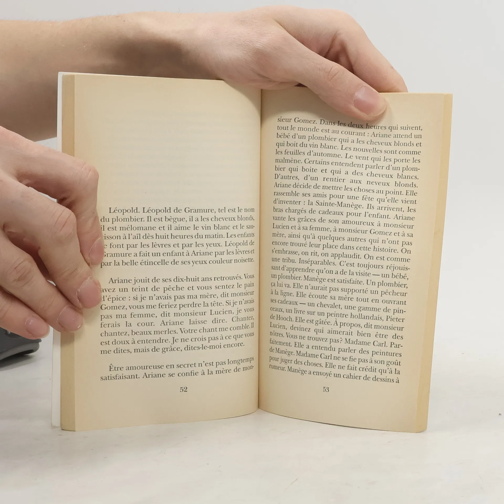 "Je m'appelle Manège, j'ai neuf mois et je pense quelque chose que je ne sais pas encore dire. Entrez dans ma tête. Mon cerveau est plié en huit comme une nappe de coton. En huit ou en seize. Dépliez la nappe, voilà ma pensée de neuf mois : d'une part, les coccinelles n'ont pas bon goût. D'autre part, les ronces brûlent. Enfin, les mères volent. Bref, rien que d'ordinaire. Il n'y a que du naturel dans ce monde. Ou si vous voulez, c'est pareil : il n'y a que des miracles dans ce monde."