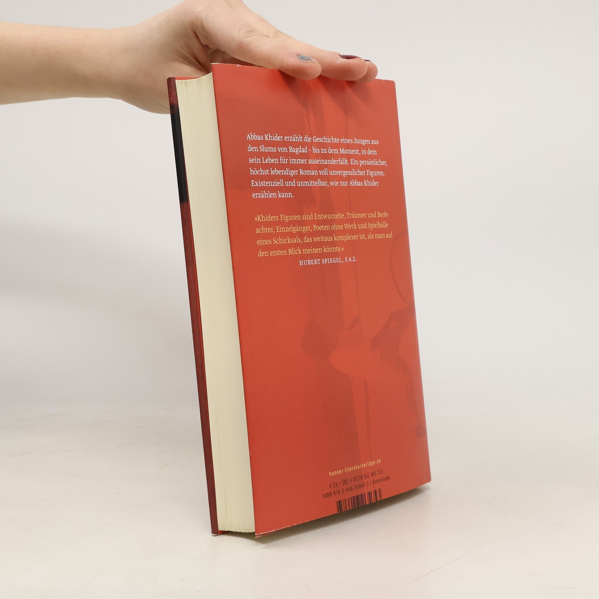 Die Geschichte eines Jungen aus den Slums von Bagdad: „Überraschend nüchtern, mit schonungslosen Blick und voller Humor, der halb befreiend, halb bitter ist. (Abbas Khiders) mitreißender neuer Roman.“ Julia Encke, Frankfurter Allgemeine Sonntagszeitung Shams Hussein ist ein normaler Junge mit ganz normalen Träumen. In der Hoffnung auf ein friedlicheres Leben ziehen seine Eltern mit ihm und seiner Schwester aus dem Süden des Irak nach Bagdad. Doch aus dem Streben nach einer besseren Zukunft wird in dem von Saddam Hussein beherrschten Land schnell ein Leben in existenzieller Not. Die Familie wohnt neben einem riesigen Müllberg, Shams arbeitet als Plastiktütenverkäufer, als Busfahrergehilfe, als Lastenträger. Und er liebt Bücher. In einer Zeit jedoch, in der ein falsches Wort den Tod bedeuten kann, begibt er sich damit in eine Welt, deren Gefahren er nicht kommen sieht. Ein persönlicher, höchst lebendiger Roman voll unvergesslicher Figuren.