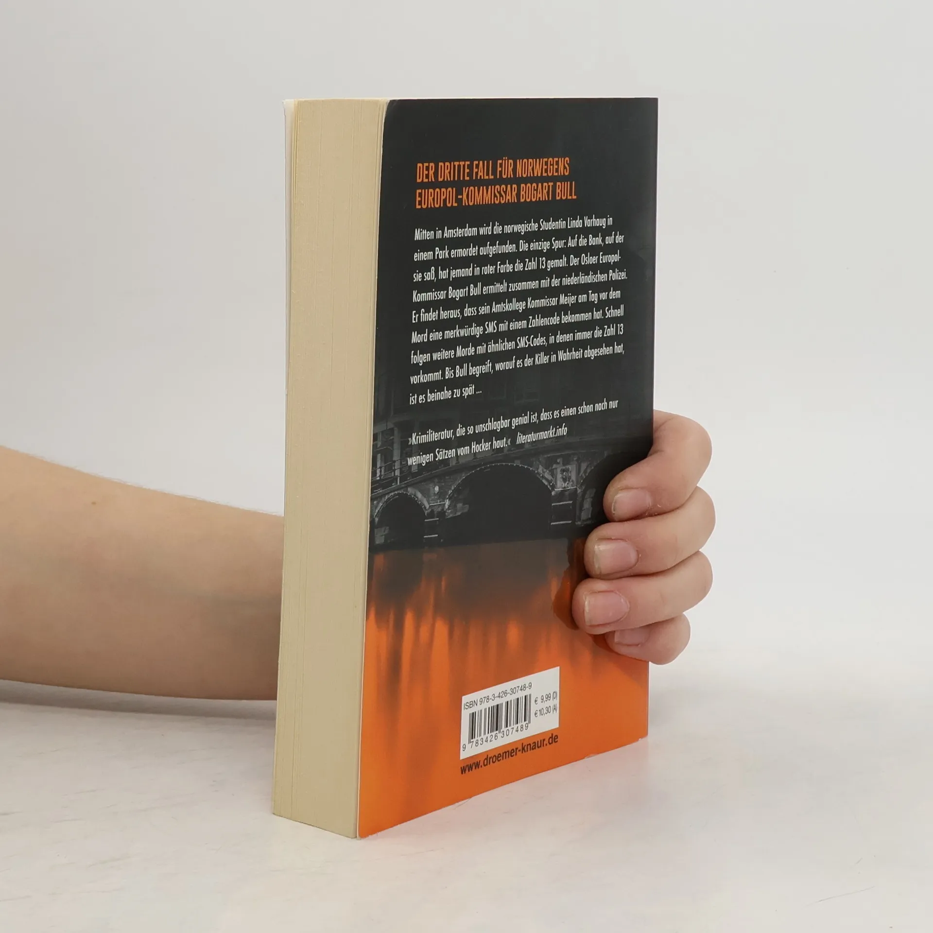Hochspannung für alle Fans skandinavischer Kriminalromane: Sein dritter Fall führt den norwegischen Europol-Ermittler Bogart Bull nach Amsterdam – und in die dunkelsten Abgründe seiner eigenen Vergangenheit. Auf einer Parkbank in Amsterdam findet man die Leiche einer norwegischen Studentin, regelrecht hingerichtet mit einer Bolzenschusspistole. Trotz des öffentlichen Tatorts gibt es keine Zeugen, die einzige Spur ist die mit roter Farbe auf die Parkbank gemalte Zahl 13 – und eine SMS mit einem kryptischen Code, die kurz vor dem Mord an den holländischen Kommissar Meijer geschickt wurde. Weil die Amsterdamer Polizei im Dunkeln tappt, wird Europol-Ermittler Bogart Bull aus Norwegen auf den Fall angesetzt. Doch noch bevor Bull sich mit allen Umständen des Mordes vertraut gemacht hat, erhält Meijer eine weitere SMS. Kurz darauf findet man einen Bordellkönig tot in seinem Swimmingpool, in Gesellschaft eines hochgiftigen Fisches. Wieder wurde der Tatort mit einer roten 13 markiert. Auch den dritten Mord kann Bull nicht verhindern, diesmal ist das Opfer ein holländischer Rechtspopulist. Fieberhaft versucht Bogart Bull, eine Verbindung zwischen den Opfern herzustellen. Bis er begreift, auf wen es der Killer in Wahrheit abgesehen hat, ist es beinahe zu spät …