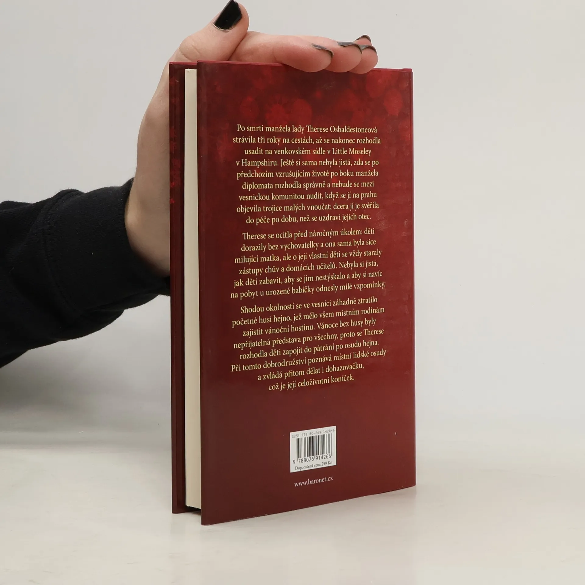 Po smrti manžela strávila lady Therese Osbaldestoneová tři roky na cestách, než se usadila na venkovském sídle Little Moseley v Hampshire. Není si jistá, zda se rozhodla správně, když jí na prahu přistála trojice malých vnoučat, které jí dcera svěřila do péče, zatímco se uzdravoval jejich otec. Therese, milující matka, se ocitla před výzvou, protože děti dorazily bez vychovatelky a ona nevěděla, jak je zabavit, aby si odnesly milé vzpomínky na pobyt u urozené babičky. Záhadně se ve vesnici ztratilo husí hejno, které mělo zajistit vánoční hostinu pro místní rodiny. Vánoce bez husy byly nepřijatelné, a tak se Therese rozhodla zapojit děti do pátrání. Při tom dobrodružství se seznamuje s místními osudy a zároveň se věnuje dohazování, což je její celoživotní koníček. Úspěšně sbližuje krásnou slečnu Eugenii Fitzgibbonovou a zasmušilého lorda Christiana Longfellowa, zatímco se snaží dětem zajistit zábavu a dobrodružství. Přestože se Therese snaží, v pátrání po husím hejnu nedělá žádné pokroky a Vánoce se rychle blíží. Málokdo věří, že se husy objeví včas, aby vesnice nepřišla o tradiční vánoční hody. Lady Therese Osbaldestoneová se na svém venkovském sídle rozhodně nenudí.