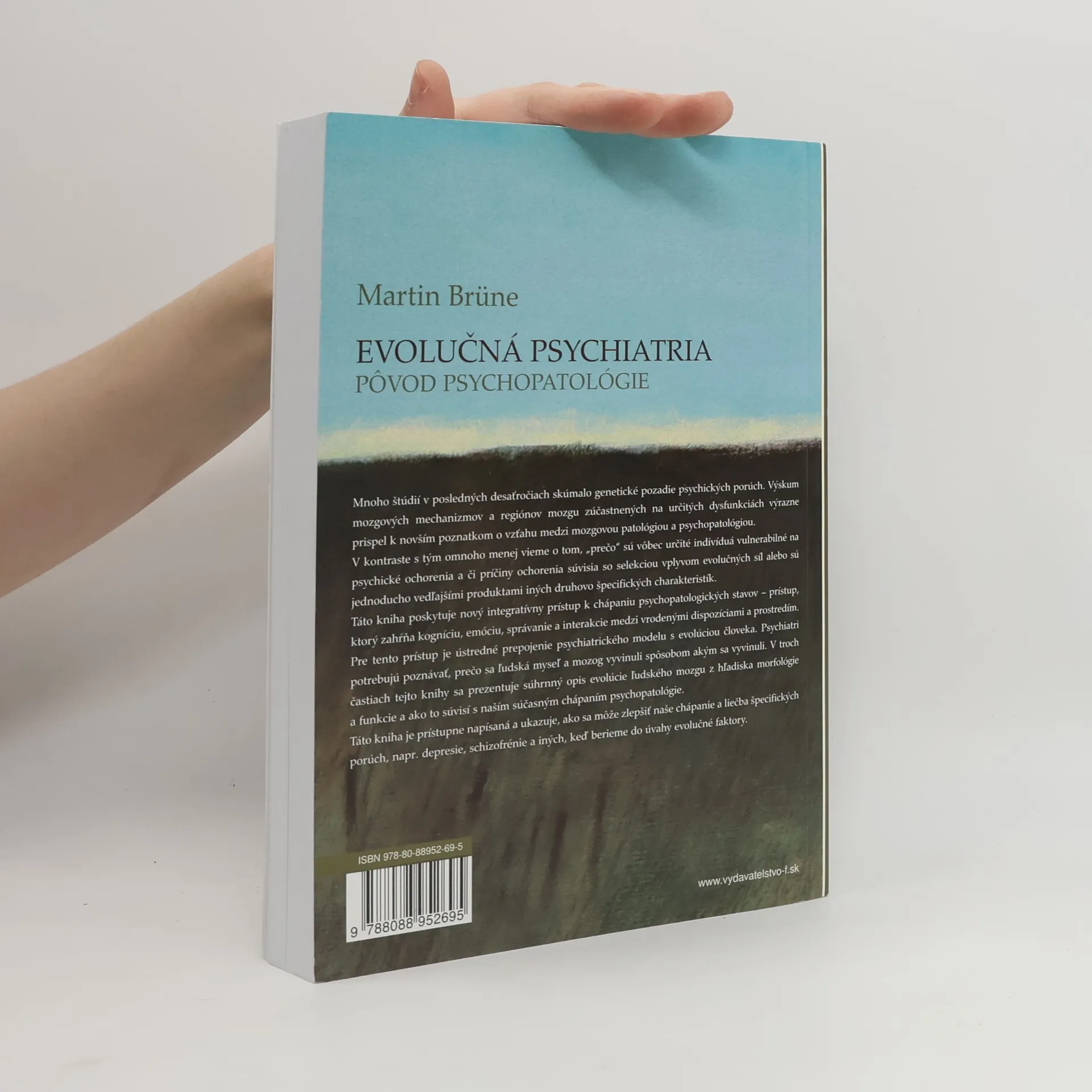 Mnoho štúdií v posledných desaťročiach skúmalo genetické pozadie psychických porúch. Výskum mozgových mechanizmov a regiónov mozgu zúčastnených na určitých dysfunkciách výrazne prispel k novším poznatkom o vzťahu medzi mozgovou patológiou a psychopatológiou. V kontraste s tým omnoho menej vieme o tom, „prečo“ sú vôbec určité indivíduá vulnerabilné na psychické ochorenia a či príčiny ochorenia súvisia so selekciou vplyvom evolučných síl alebo sú jednoducho vedľajšími produktami iných druhovo špecifických charakteristík. Táto kniha poskytuje nový integratívny prístup k chápaniu psychopatologických stavov – prístup, ktorý zahŕňa kogníciu, emóciu, správanie a interakcie medzi vrodenými dispozíciami a prostredím. Pre tento prístup je ústredné prepojenie psychiatrického modelu s evolúciou človeka. Psychiatri potrebujú poznávať, prečo sa ľudská myseľ a mozog vyvinuli spôsobom akým sa vyvinuli. V troch častiach tejto knihy sa prezentuje súhrnný opis evolúcie ľudského mozgu z hľadiska morfológie a funkcie a ako to súvisí s naším súčasným chápaním psychopatológie. Táto kniha je prístupne napísaná a ukazuje, ako sa môže zlepšiť naše chápanie a liečba špecifických porúch, napr. depresie, schizofrénie a iných, keď berieme do úvahy evolučné faktory.