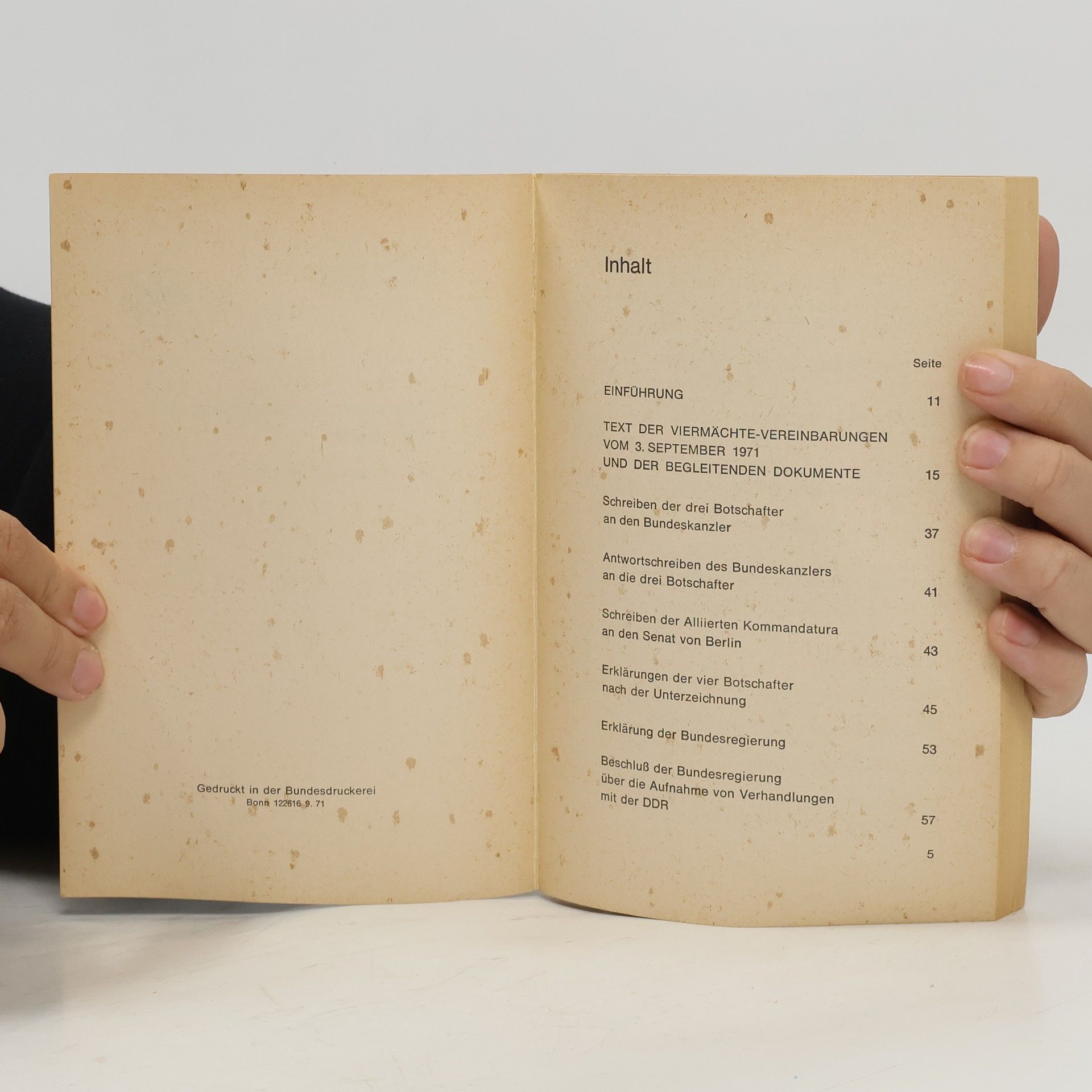 Skladem máme celkem knihy Das Viermächte-Abkommen über Berlin vom 3. Septrember 1971 (1971).