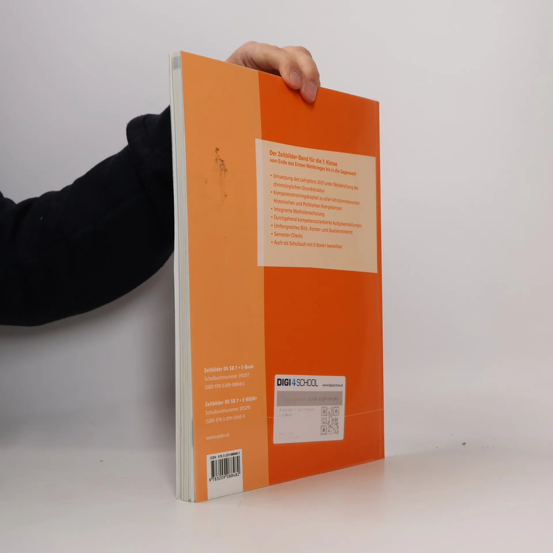 Der Zeitbilder Einzelband für die 7. Klasse wurde zum Lehrplan 2017 erneut bearbeitet und ist nun in die Kompetenzmodule des Lehrplans gegliedert, die den Semestern zugeordnet sind. Speziell konzipierte Kompetenztrainingsseiten zu Historischen Kompetenzen und zu Politischen Kompetenzen sowie Methodenschulung sind integrierter Bestandteil der einzelnen Kapitel. Die Selbsttätigkeit der Schülerinnen und Schüler wird durch vielfältige, operationalisierte Arbeitsaufträge gefördert. Über die Inhalte des Doppelbandes hinausgehende Inhalte ermöglichen individuelle Schwerpunktsetzungen. Zusammenfassungen zur Wiederholung und Grundbegriffe, die das Erlernen von historischem und politischem Fachvokabular erleichtern, schließen die Kapitel ab. Zusätzlich bieten die beiden Semesterchecks für die 7. Klasse einen Überblick über die zu erlangenden Kompetenzen. Das garantiert eine systematische und nachhaltige Kompetenzentwicklung bis zur Matura. Bei diesem Schulbuch handelt es sich um eine Kombination von gedrucktem Buch und E-Book.