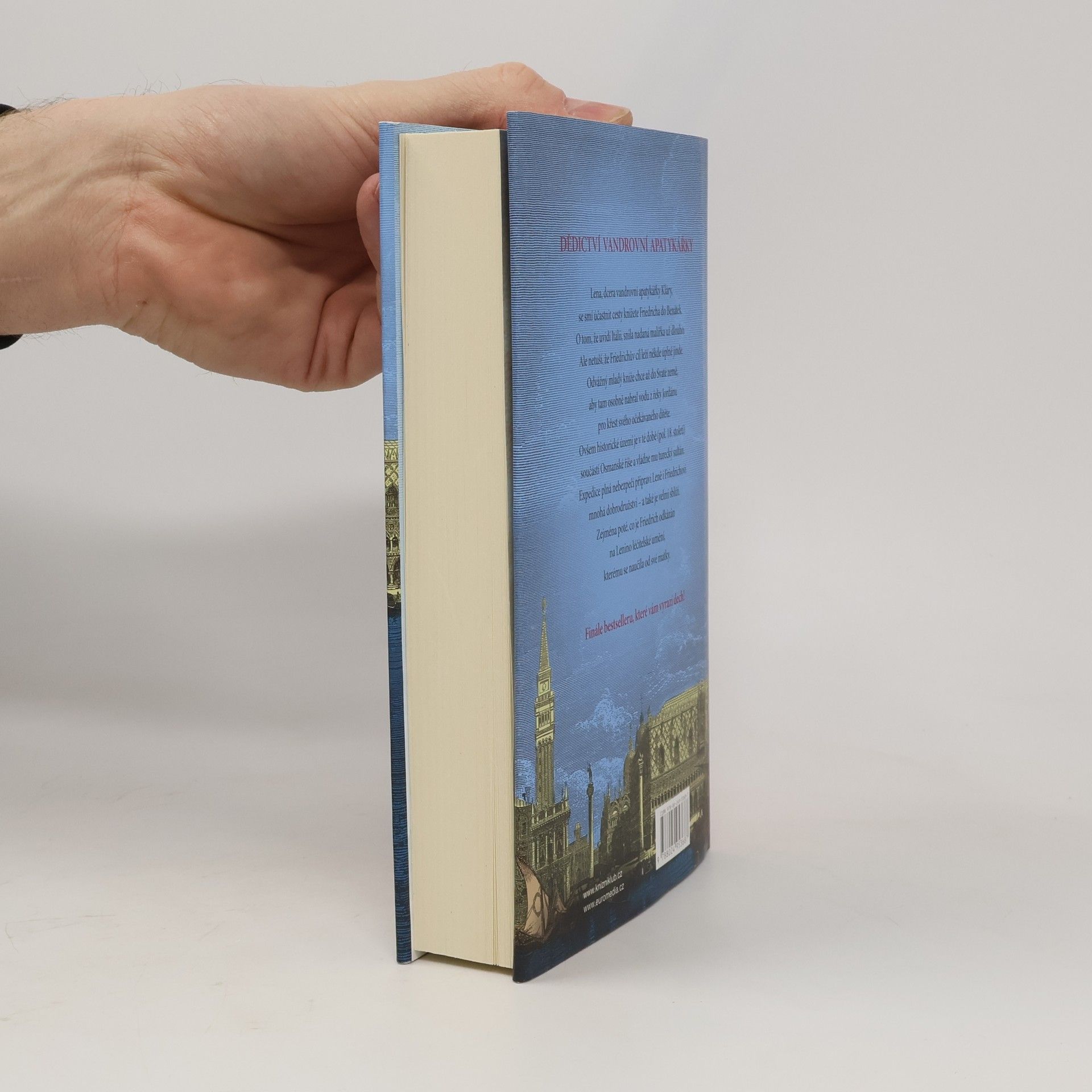 Finále tetralogie o vandrovní apatykářce nás zavede do Benátek a posléze i do Svaté země, která je v pol. 18. století součástí Osmanské říše a vládne jí turecký sultán. Expedice plná nebezpečí připraví Leně, dceři vandrovní apatykářky, i knížeti Friedrichovi četná dobrodružství a také je velmi sblíží. Zejména poté, co je Friedrich odkázán na Lenino léčitelské umění, kterému se naučila od své matky Kláry.