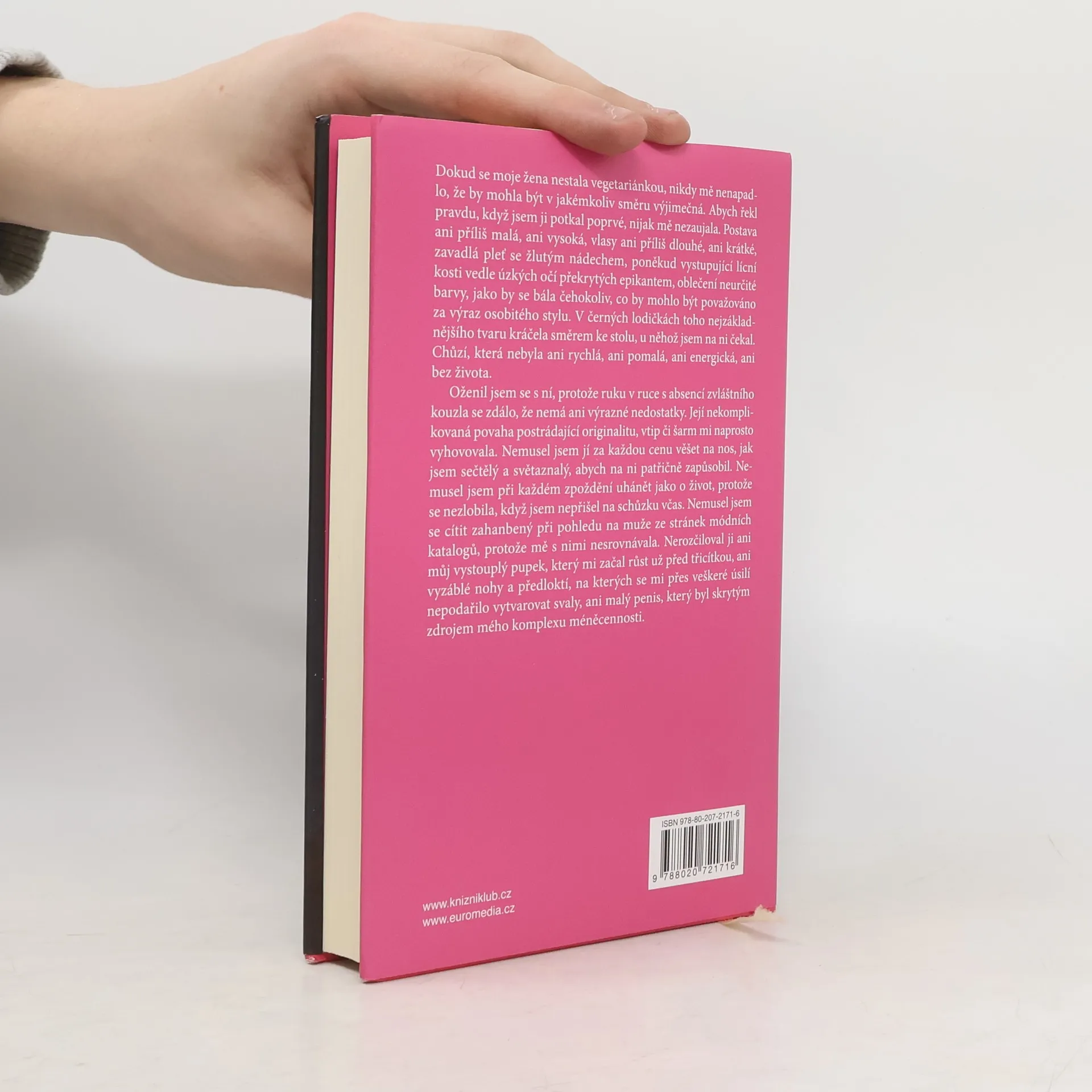 Ten pocit syrového masa rozžvýkaného mezi mými zuby. Jonghje se jednoho dne probudí z krvavé noční můry a její život se začne dramaticky měnit. Ze všeho nejdřív přestane jíst maso. Ovšem v dravé patriarchální společnosti její náhlé vegetariánství a zejména neoblomný postoj, s jakým se vzepře svému muži i rodině, představuje pro její okolí ohromný šok. Jihokorejská autorka získala za román roku 2016 ocenění Man Booker International.