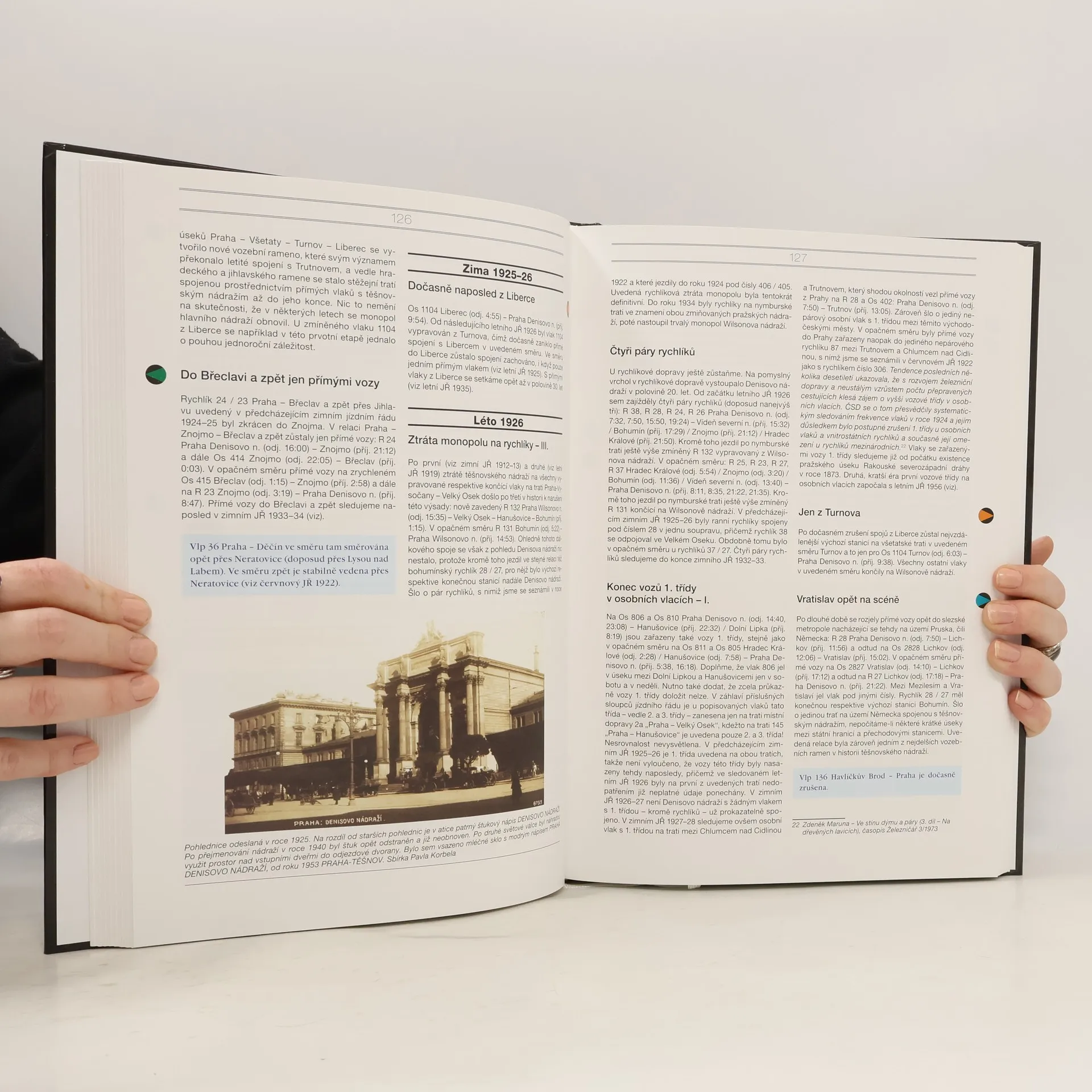 Kolik spěchajících cestujících prošlo odjezdovou dvoranou, kolik jízdenek bylo v pokladnách vydáno, kolik půllitrů piva bylo vyčepováno v restauraci a kolik litrů strojního oleje vyteklo z tyčoví parních lokomotiv na pražce kolejí nádraží Praha-Těšnov – to už dnes nikdo nespočítá… Téměř stoletá historie významného pražského nádraží ožívá v této knize především v popisu vozebních ramen s relacemi vlaků, které odtud vyjížděly. Vedle osobních vlaků a ve své době rychlíků jsou zaznamenány i relace vlakových pošt jakožto nedílná součást každodenního koloritu zdejšího provozu. Ale nejen o tom kniha pojednává. Čtenář se seznámí rovněž se vznikem c. k. Rakouské severozápadní dráhy, jejíž výraznou tváří popisované nádraží bylo, a zároveň se dozví, proč zde cestující do vlaků už nenastupují a proč už ani výpravní budova ke smutku všech příznivců železnice nestojí. Text doprovází bohatá obrazová dokumentace. Kromě tabulek a schémat tratí se tu dostávají k očím čtenářů fotografie z dávných i pozdních dob existence nádraží, ukázky z dobových jízdních řádů, staré inzerce, jízdenky, pohlednice a také snímky či nákresy poštovních vozů.