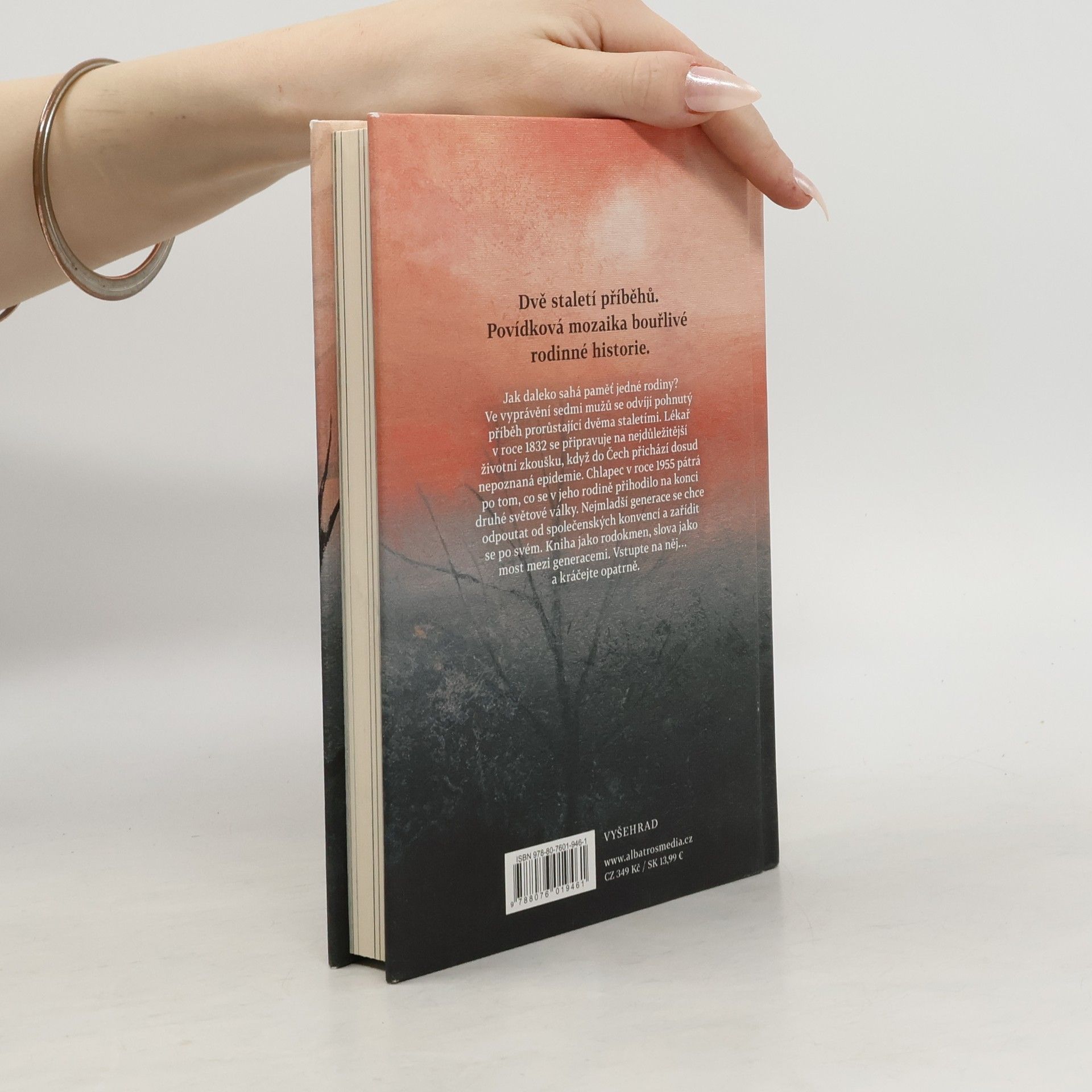 Dvě staletí příběhů. Povídková mozaika bouřlivé rodinné historie. Jak daleko sahá paměť jedné rodiny? Ve vyprávění sedmi mužů se odvíjí pohnutý příběh prorůstající dvěma staletími. Lékař v roce 1832 se připravuje na nejdůležitější životní zkoušku, když do Čech přichází dosud nepoznaná epidemie. Chlapec v roce 1955 pátrá po tom, co se v jeho rodině přihodilo na konci druhé světové války. Nejmladší generace se chce odpoutat od společenských konvencí a zařídit se po svém. Kniha jako rodokmen, slova jako most mezi generacemi. Vstupte na něj… a kráčejte opatrně.
