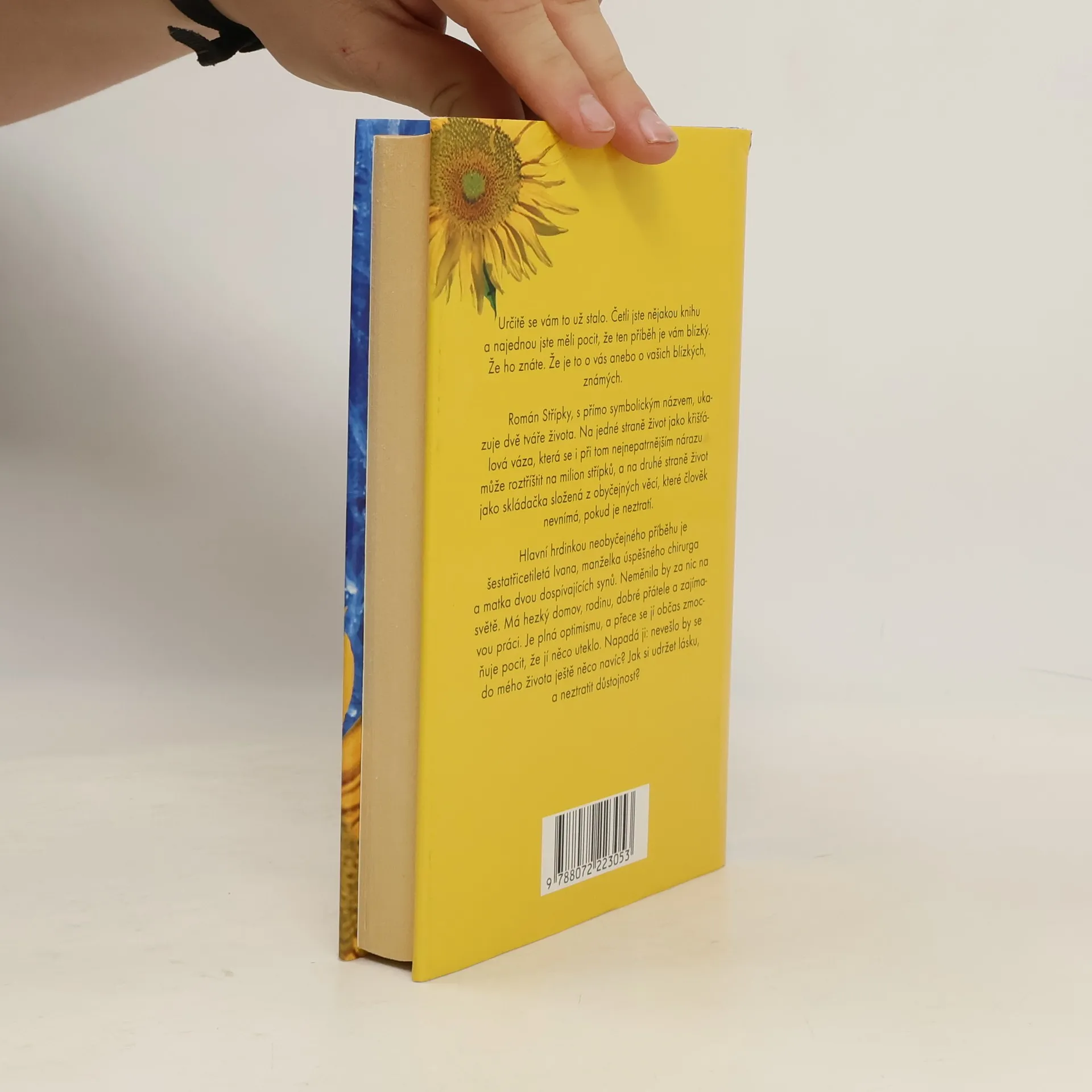 Román Střípky, s přímo symbolickým názvem, ukazuje dvě tváře života. Na jedné straně život jako křišťálová váza, která se i při tom nejnepatrnějším nárazu může roztříštit na milion střípků, a na druhé straně život jako skládačka složená z obyčejných věcí, které člověk nevnímá, pokud je neztratí. Hlavní hrdinkou neobyčejného příběhu je šestatřicetiletá Ivana, manželka úspěšného chirurga a matka dvou dospívajících synů. Neměnila by za nic na světě. Má hezký domov, rodinu, dobré přátele a zajímavou práci. Je plná optimismu, a přece se jí občas zmocňuje pocit, že jí něco uteklo. Napadá ji: nevešlo by se do mého života ještě něco navíc? Jak si udržet lásku, a neztratit důstojnost?