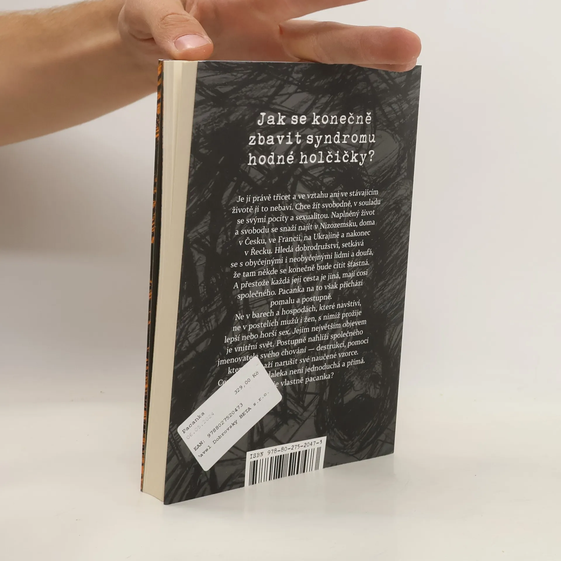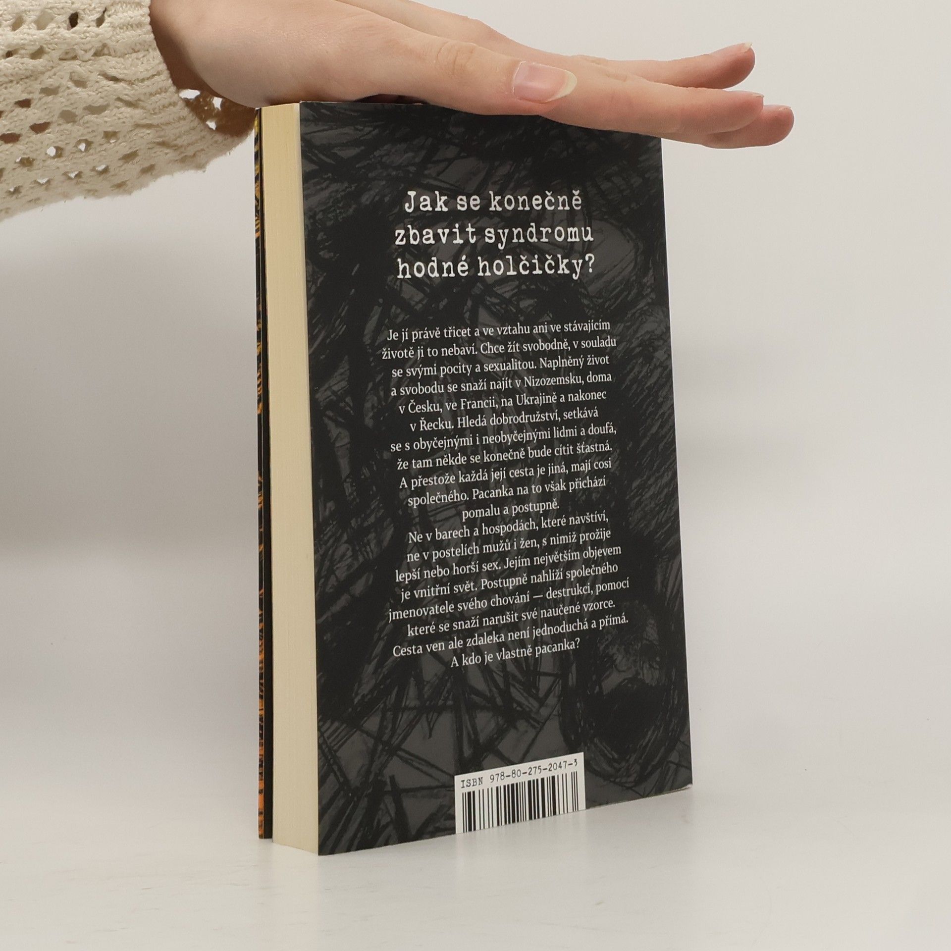 Jak se konečně zbavit syndromu hodné holčičky? Je jí právě třicet a ve vztahu ani ve stávajícím životě ji to nebaví. Chce žít svobodně, v souladu se svými pocity a sexualitou. Naplněný život a svobodu se snaží najít v Nizozemsku, doma v Česku, ve Francii, na Ukrajině a nakonec v Řecku. Hledá dobrodružství, setkává se s obyčejnými i neobyčejnými lidmi a doufá, že tam někde se konečně bude cítit šťastná. A přestože každá její cesta je jiná, mají cosi společného. Pacanka na to však přichází pomalu a postupně. Ne v barech a hospodách, které navštíví, ne v postelích mužů i žen, s nimiž prožije lepší nebo horší sex. Jejím největším objevem je vnitřní svět. Postupně nahlíží společného jmenovatele svého chování — destrukci, pomocí které se snaží narušit své naučené vzorce. Cesta ven ale zdaleka není jednoduchá a přímá. A kdo je vlastně pacanka?