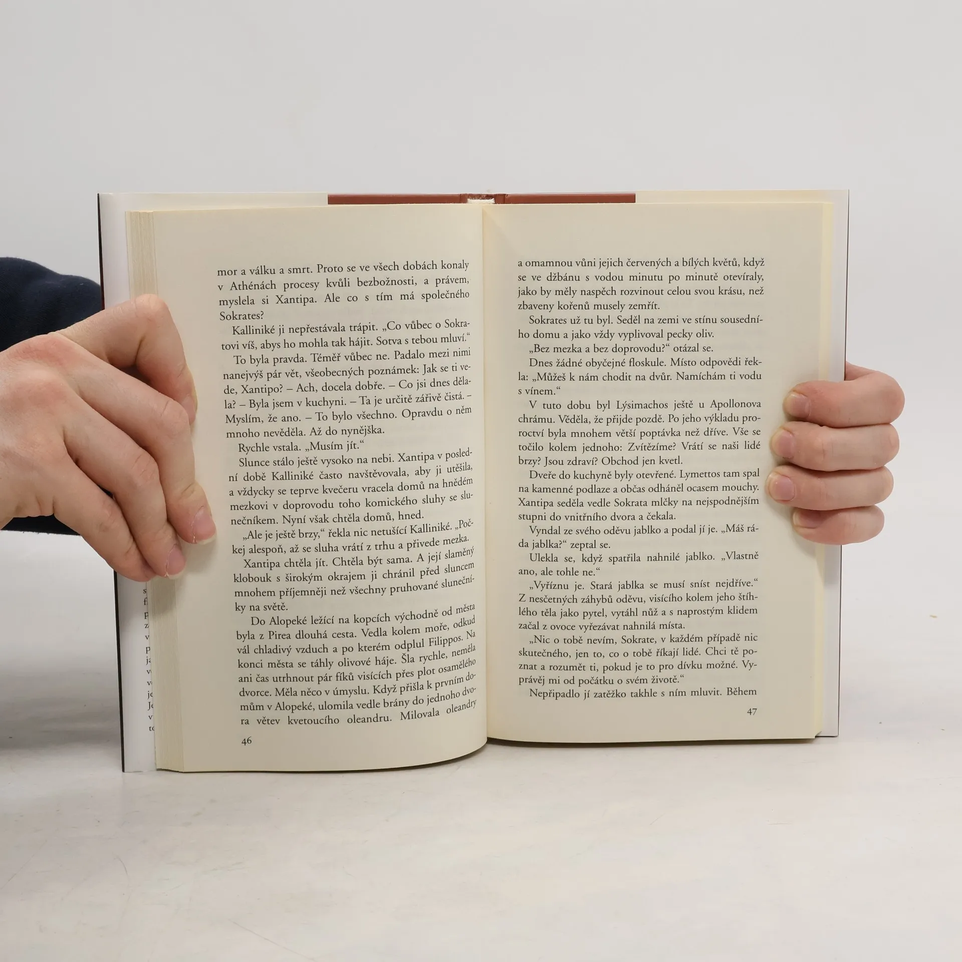 Sokrates měl dvě ženy, Myrtó a Xantipu, přičemž o Myrtó se ví jen málo, zatímco Xantipa je známá jako hádavá žena, která svému muži ztěžovala život. Tato pověst může být ovlivněna naším obrazem Sokrata jako filozofa, který měl slabost pro mladé chlapce a doma žil s "starou babou". Archeoložka a spisovatelka Maria Regina Kaiserová však našla v Platónově Faidonu pasáž, která popisuje poslední setkání Sokrata s Xantipou ve vězení, kde držela jejich nejmladšího syna. To vyvolává pochybnosti o tom, že by Xantipa byla stará a zlá, a naznačuje, že Sokrates se o ni staral. Tento rozpor inspiroval autorčinu dlouholetou rešerši a fantazii, aby představila nový obraz Xantipy jako čtrnáctileté aristokratky, která byla fascinována Sokratovým charismatem, nikoli jeho filozofií. V pozadí příběhu se odehrávají boje o Syrakusy a vystupují jak historické, tak fiktivní postavy, mýty a zvyky, které odrážejí postavení žen v té době. Xantipa, krásná nevěsta Sokrata, se dokázala vymanit z podřízené role a stát se jeho ženou. Tento příběh zkoumá neobyčejnou lásku a emancipaci v Athénách klasického věku, která mohla skutečně existovat.