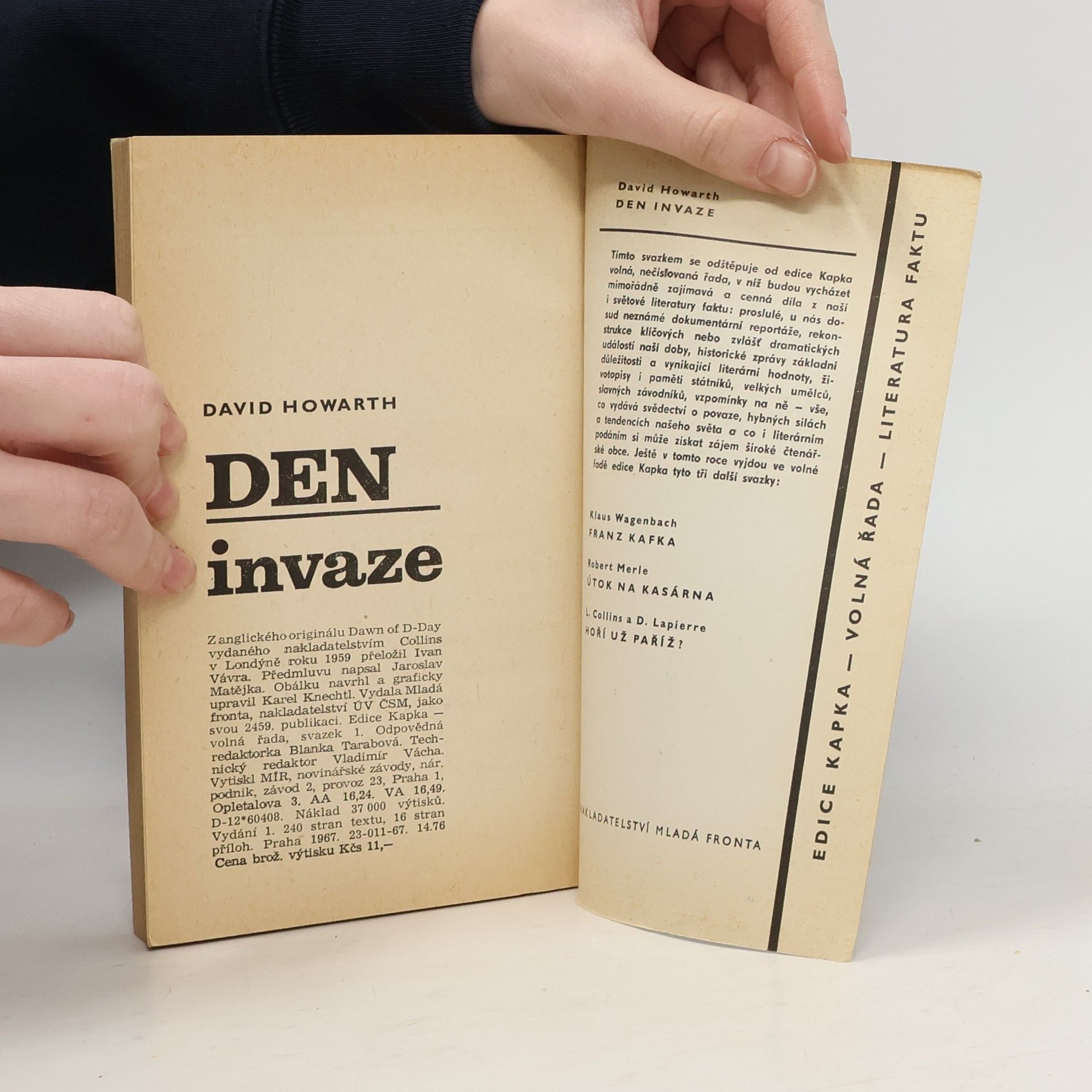 Invazi anglo-amerických vojsk do Normandie považoval sám Churchill za nejsložitější a nejobtížnější operaci v dějinách. Autor zachycuje v knize její průběh v zážitcích mužů, které vybral v počtu asi třiceti tak, aby jejich osudy poskytly o ní pokud možno nejúplnější představu. Z líčení je patrno, že v přípravách invaze hrála nejdůležitější úlohu britská diplomacie a především Winston Churchill.