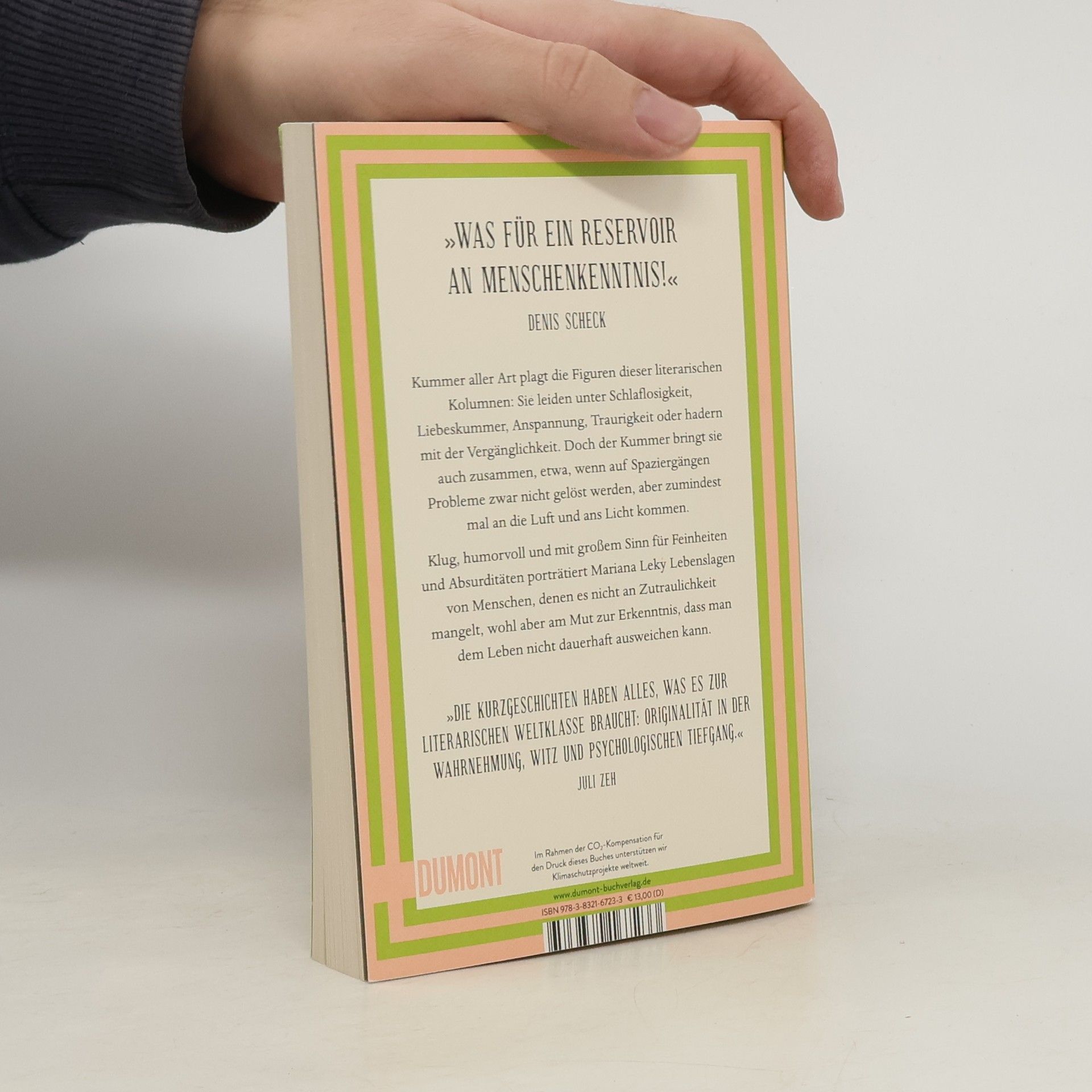 »Alle wirken innerlich blitzblank, nur in unserem Inneren sieht es aus wie bei Hempels unterm Sofa«, denkt sich Kioskbesitzer Armin, als er vergeblich versucht, erfolgreich zu meditieren. Und auch im Inneren der anderen Figuren dieser literarischen Kolumnen herrscht Unordnung: Frau Wiese kann nicht mehr schlafen, Herr Pohl ist nachhaltig verzagt, Lisa hat ihren ersten Liebeskummer, Vadims Hände zittern, Frau Schwerter muss ganz dringend entspannen, ein trauriger Patient hat seine Herde verloren, und Psychoanalytiker Ulrich legt sich mit der Vergänglichkeit an. Kummer aller Art plagt die Menschen, die sich, mal besser, mal schlechter, durch den Alltag manövrieren. Aber der Kummer vereint sie auch, etwa, wenn auf Spaziergängen Probleme zwar nicht gelöst werden, aber zumindest mal an die Luft und ans Licht kommen. Klug, humorvoll und mit großem Sinn für Feinheiten und Absurditäten porträtiert Mariana Leky Lebenslagen von Menschen, denen es nicht an Zutraulichkeit mangelt, wohl aber am Mut zur Erkenntnis, dass man dem Leben nicht dauerhaft ausweichen kann. Die in ›Kummer aller Art‹ versammelten Texte erschienen erstmals als Kolumnen in PSYCHOLOGIE HEUTE.