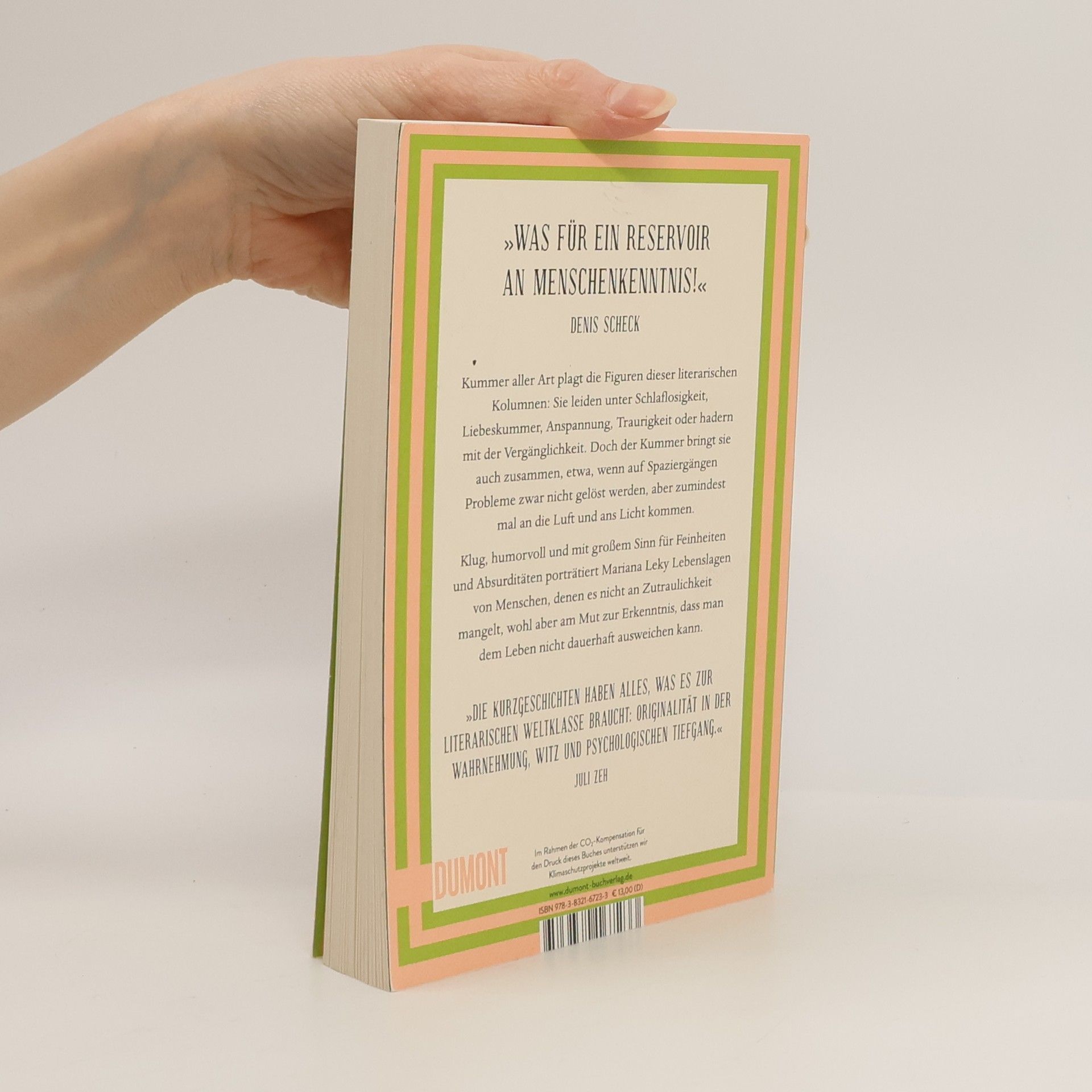 »Alle wirken innerlich blitzblank, nur in unserem Inneren sieht es aus wie bei Hempels unterm Sofa«, denkt sich Kioskbesitzer Armin, als er vergeblich versucht, erfolgreich zu meditieren. Und auch im Inneren der anderen Figuren dieser literarischen Kolumnen herrscht Unordnung: Frau Wiese kann nicht mehr schlafen, Herr Pohl ist nachhaltig verzagt, Lisa hat ihren ersten Liebeskummer, Vadims Hände zittern, Frau Schwerter muss ganz dringend entspannen, ein trauriger Patient hat seine Herde verloren, und Psychoanalytiker Ulrich legt sich mit der Vergänglichkeit an. Kummer aller Art plagt die Menschen, die sich, mal besser, mal schlechter, durch den Alltag manövrieren. Aber der Kummer vereint sie auch, etwa, wenn auf Spaziergängen Probleme zwar nicht gelöst werden, aber zumindest mal an die Luft und ans Licht kommen. Klug, humorvoll und mit großem Sinn für Feinheiten und Absurditäten porträtiert Mariana Leky Lebenslagen von Menschen, denen es nicht an Zutraulichkeit mangelt, wohl aber am Mut zur Erkenntnis, dass man dem Leben nicht dauerhaft ausweichen kann. Die in ›Kummer aller Art‹ versammelten Texte erschienen erstmals als Kolumnen in PSYCHOLOGIE HEUTE.