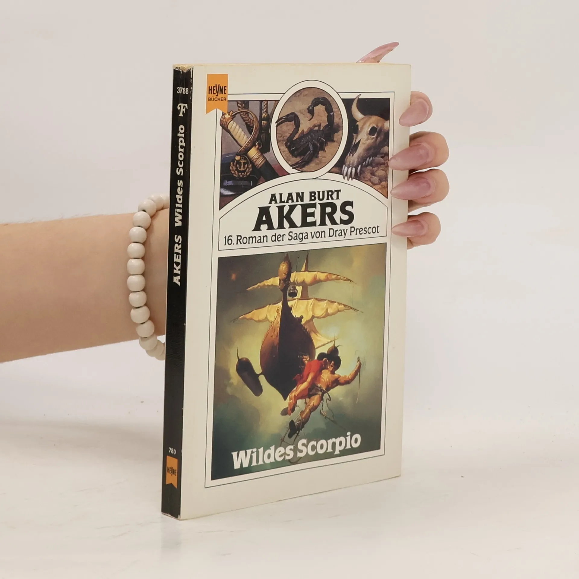 Heyne SF 3788 Cover: Richard Hescox Klappentext: Die Reiter zügelten ihre Reitvögel und formierten sich zum Angriff.Mein Flugboot stieg auf. Langsam. Zu langsam. Ich blickte der Horde entgegen. Bei Krun! Ich wollte keinen Streit. Doch wenn diese hochmütigen, boshaften Flutsmänner einen Nahkampf haben wollten, sollten sie ihn haben! Sie rasten heran, mit ihren grüngefiederten, enganliegenden Rüstungen, an den kleinen grünen Kappen wehten Bänderbüschel im Flugwind. Sie hoben die Armbrüste. Doch ehe sie schießen konnten, schickte ich den ersten Pfeil auf den Weg. Die Spitze bohrte sich in den Körper des führenden Flutsmannes, die blauen Flugfedern blitzten. Ich schickte sofort einen zweiten Pfeil hinterher. Ehe der Anführer aus dem Sattel geglitten war und an den Ledergurten seines Clerketers baumelte, tötete mein nächstes Geschoß den zweiten Gegner. Ich hatte keine Gelegenheit mehr, das Flugboot ausweichen zu lassen. Vogel und Boot prallten mit einem lauten Krachen zusammen. Soweit eine Kostprobe aus dem vorliegenden Band 16 der Saga von Dray Prescot, mit Abenteuern des Erdenmenschen aus dem 19. Jahrhundert, die er 400 Lichtjahre entfernt auf dem wilden Planeten Kregen unter der Doppelsonne von Antares im Sternbild des Skorpions erlebte. Weitere Bände sind in Vorbereitung.