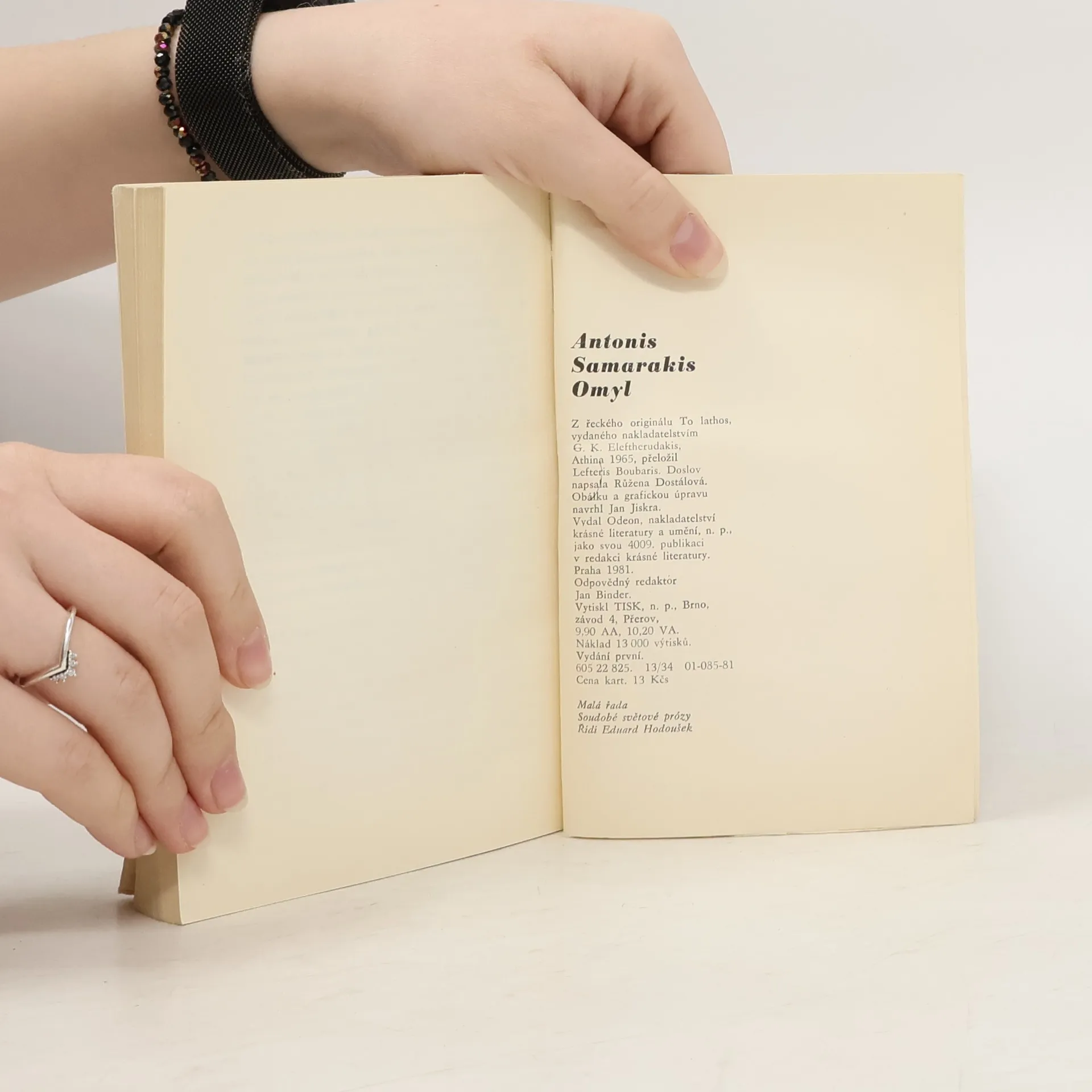 Román řeckého spisovatele (* 1919), jehož dílo bylo poctěno cenami doma i v zahraničí, vyjadřuje metodou detektivní prózy ovzduší policejního státu, založeného na podezírání, nejistotě a násilí. Kniha byla přeložena do třiceti jazyků a zfilmována. 01-085-81