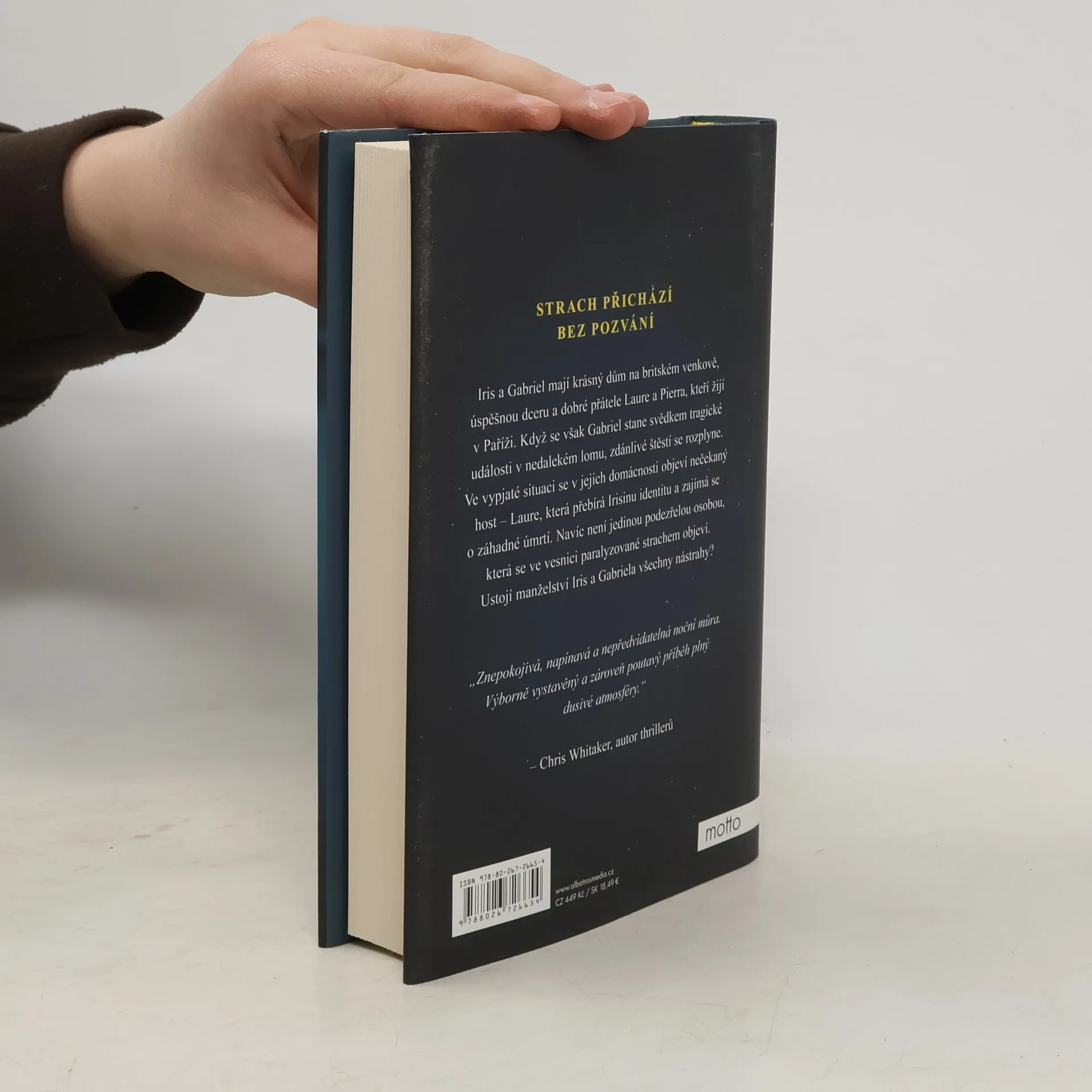Strach přichází bez pozvání. Iris a Gabriel mají krásný dům na britském venkově, úspěšnou dceru a dobré přátele Laurie a Pierra, kteří žijí v Paříži. Když se však Gabriel stane svědkem tragické události v nedalekém lomu, zdánlivé štěstí se rozplyne. Ve vypjaté situaci se v jejich domácnosti objeví nečekaný host – Laurie, která přebírá Irisinu identitu a zajímá se o záhadné úmrtí. Navíc není jedinou podezřelou osobou, která se ve městě paralyzovaném strachem objeví. Ustojí manželství Iris a Gabriela všechny nástrahy?