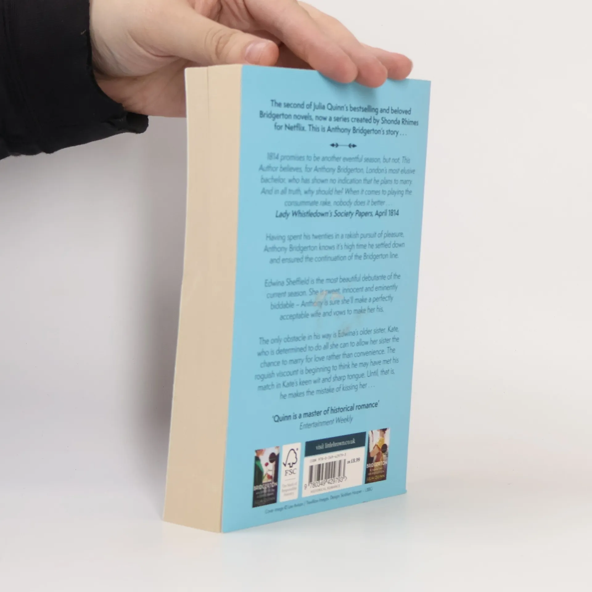 Vol. 1: Can there be any greater challenge to London's Ambitious Mamas than an unmarried duke? Lady Whistledown's Society Papers, April 1813By all accounts, Simon Basset is on the verge of proposing to his best friend's sister, the lovely - and almost-on-the-shelf - Daphne Bridgerton. But the two of them know the truth - it's all an elaborate plan to keep Simon free from marriage-minded society mothers. And as for Daphne, surely she will attract some worthy suitors now that it seems a duke has declared her desirable . . .Their ruse works like a charm - at first. But as Daphne waltzes across ballroom after ballroom with Simon, it's hard to remember that their courtship is a complete sham. Maybe it's his devilish smile, certainly it's the way his eyes seem to burn every time he looks at her. It wasn't the plan, but it seems she's falling for the duke, for real. And amidst the glittering, gossipy, cut-throat world of London's elite, there is only one certainty: love ignores every rule... [bookdepository.com].