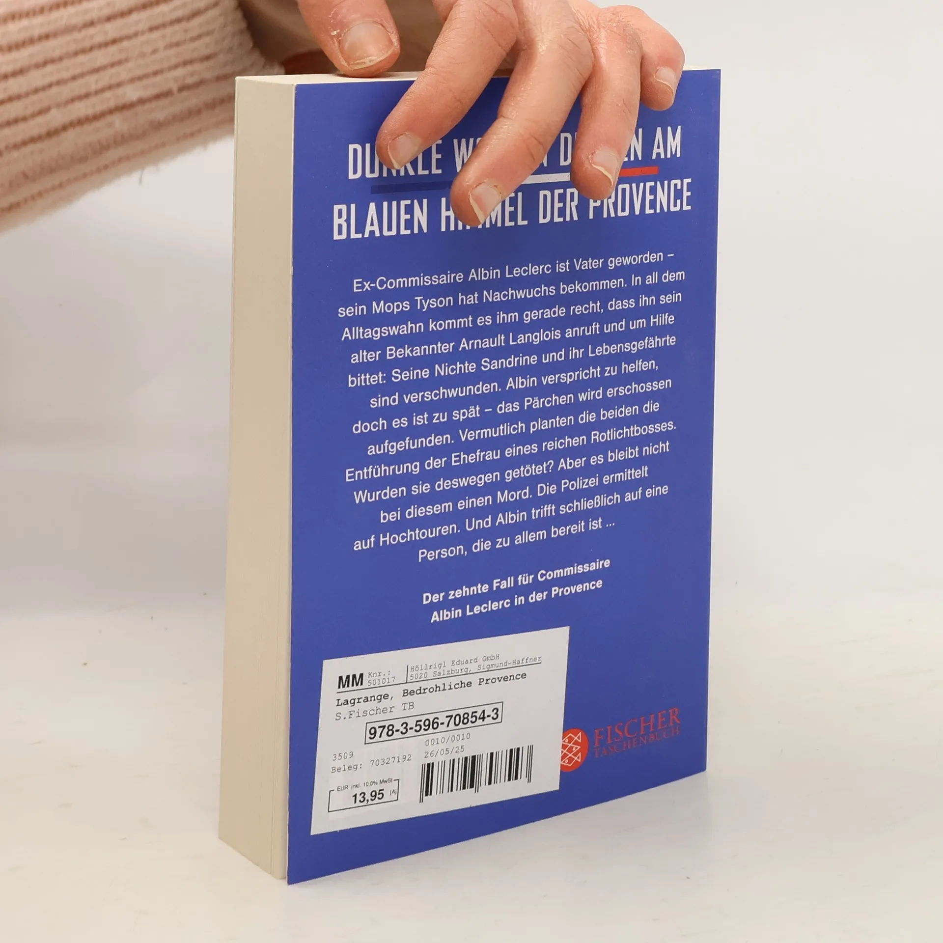 Dunkle Wolken drohen am blauen Himmel der Provence – der zehnte Band der Provence-Krimi-Reihe von Bestseller-Autor Pierre Lagrange Ex-Commissaire Albin Leclerc ist Vater geworden – sein Mops Tyson hat Nachwuchs bekommen. In all dem Alltagswahn kommt es ihm gerade recht, dass ihn sein alter Bekannter Arnault Langlois anruft und um Hilfe bittet: Seine Nichte Sandrine und ihr Lebensgefährte sind verschwunden. Albin verspricht zu helfen, doch es ist zu spät – das Pärchen wird erschossen aufgefunden. Vermutlich planten die beiden die Entführung der Ehefrau eines reichen Rotlichtbosses. Wurden sie deswegen getötet? Aber es bleibt nicht bei diesem einen Mord. Die Polizei ermittelt auf Hochtouren. Und Albin trifft schließlich auf eine Person, die zu allem bereit ist ...