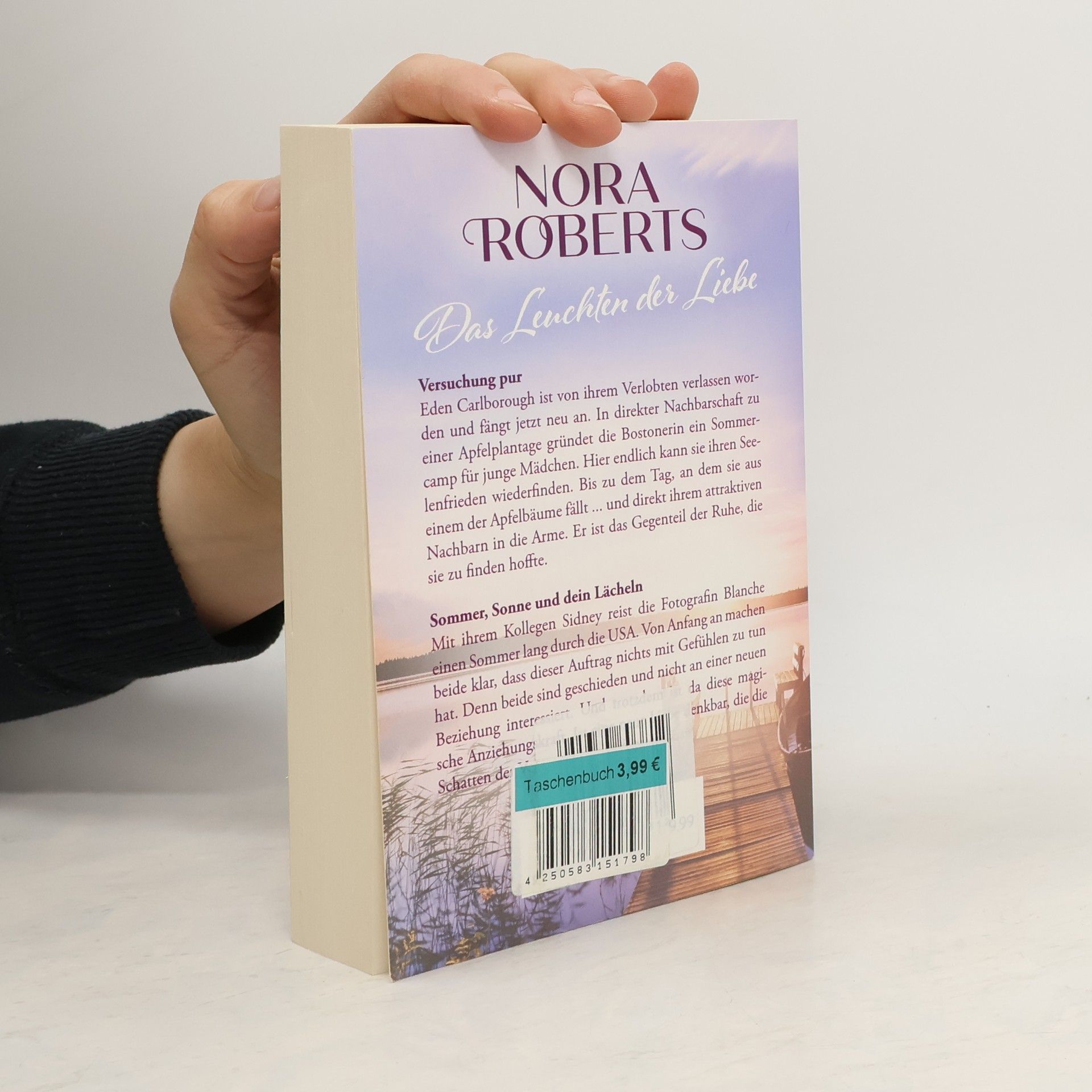 Versuchung pur Eden Carlborough ist von ihrem Verlobten verlassen worden und fängt jetzt neu an. In direkter Nachbarschaft zu einer Apfelplantage gründet die Bostonerin ein Sommercamp für junge Mädchen. Hier endlich kann sie ihren Seelenfrieden wiederfinden. Bis zu dem Tag, an dem sie aus einem der Apfelbäume fällt ... und direkt ihrem attraktiven Nachbarn in die Arme. Er ist das Gegenteil der Ruhe, die sie zu finden hoffte. Sommer, Sonne und dein Lächeln Mit ihrem Kollegen Sidney reist die Fotografin Blanche einen Sommer lang durch die USA. Von Anfang an machen beide klar, dass dieser Auftrag nichts mit Gefühlen zu tun hat. Denn beide sind geschieden und nicht an einer neuen Beziehung interessiert. Und trotzdem ist da diese magische Anziehungskraft. Ist eine neue Liebe denkbar, die die Schatten der Vergangenheit verblassen lässt? »Man kann Wunschträume leider nicht in Flaschen abfüllen. Aber Nora Roberts weiß genau, wie man sie zu Papier bringt.« New York Times »Die erfolgreichste Autorin auf dem Planeten Erde« Washington Post