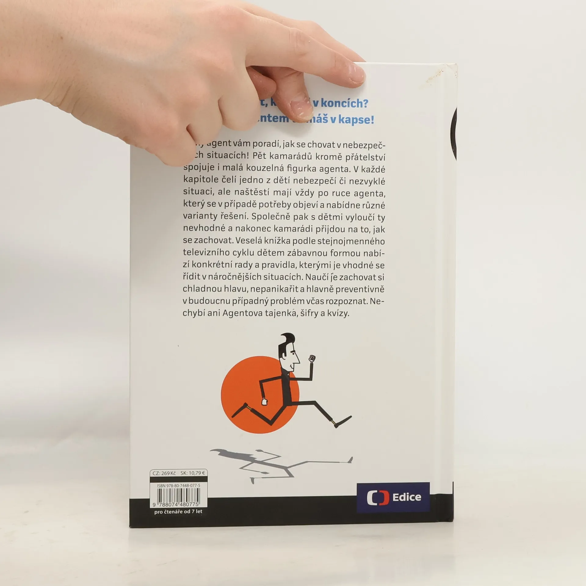 Náš tajný agent vám poradí, jak se chovat v nebezpečných a nezvyklých situacích! Pět kamarádů – Inku, Matese, Marušku, Romana a Pepi – kromě přátelství spojuje i malá kouzelná figurka agenta. V každé kapitole čelí jedno z dětí nebezpečí či nezvyklé situaci, ale naštěstí mají vždy po ruce agenta, který se v případě potřeby objeví a nabídne různé varianty řešení. Společně pak s dětmi vyloučí ty nevhodné a nakonec kamarádi přijdou na to, jak se zachovat. Veselá knížka podle stejnojmenného televizního cyklu dětem zábavnou formou nabízí konkrétní rady a pravidla, kterými je vhodné se řídit v náročnějších situacích. Naučí je zachovat si chladnou hlavu, nepanikařit a hlavně preventivně v budoucnu případný problém včas rozpoznat.