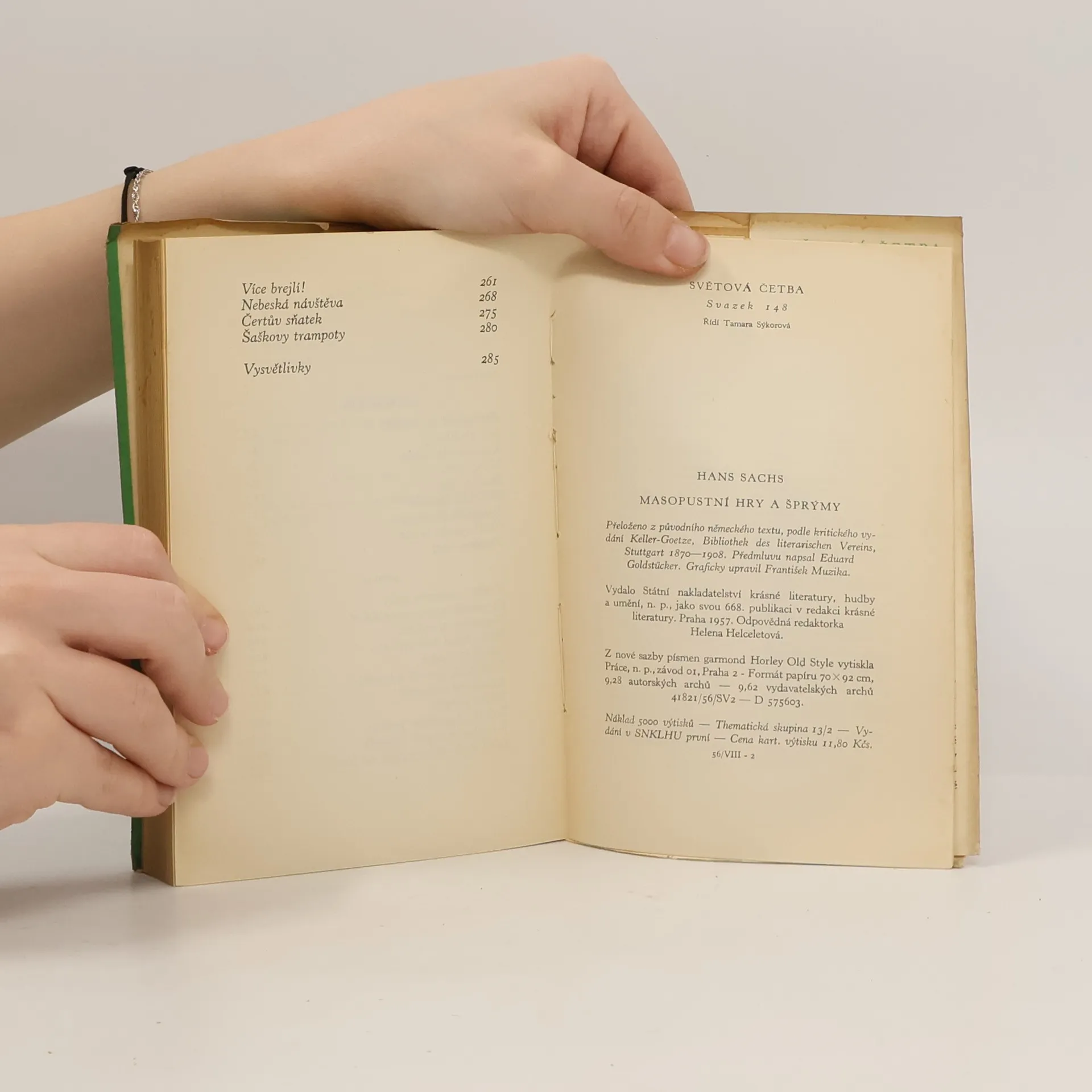 Knížka seznamuje s nejaktuálnější částí díla německého lidového básníka, jednoho z nejznámějších "mistrů pěvců norimberských". Jeho divadelní hry a šprýmy, prosycené lidovou moudrostí, vybavené realistickými žánrovými prvky a lokálním koloritem odrážejí městský i venkovskýživot, jehož hrdiny jsou drobní lidé s každodenními trampotami, slabostmi i špatnostmi. Leckdy však nastupuje místo shovívavého žertu a dobromyslného poučení ostrá kritika společenských zlořádů Sachsovy doby.