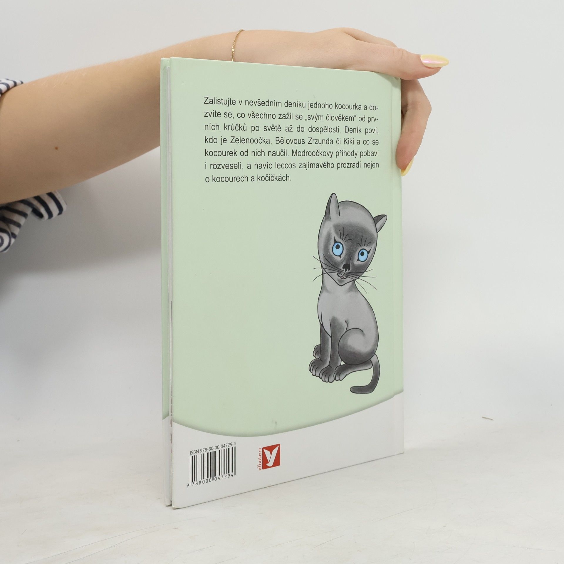 Hřejivé vyprávění malého kocourka o všem, co zažil se svým člověkem od prvních krůčků po světě až po chvíli, kdy se sám stal pyšným otcem čtyř koťátek. Modroočkův deník nám prozradí, kdo je Zelenoočka, Bělovous Zrzunda, Kiki a co se od nich náš kocourek naučil. Modroočkovy příhody pobaví a rozveselí, a navíc leccos zajímavého vypoví o vlastnostech a zvycích různých zvířátek. Mnohé z příhod už děti znají z rozhlasu i televize, nyní si o nich mohou pěkně číst v této půvabné knížce.