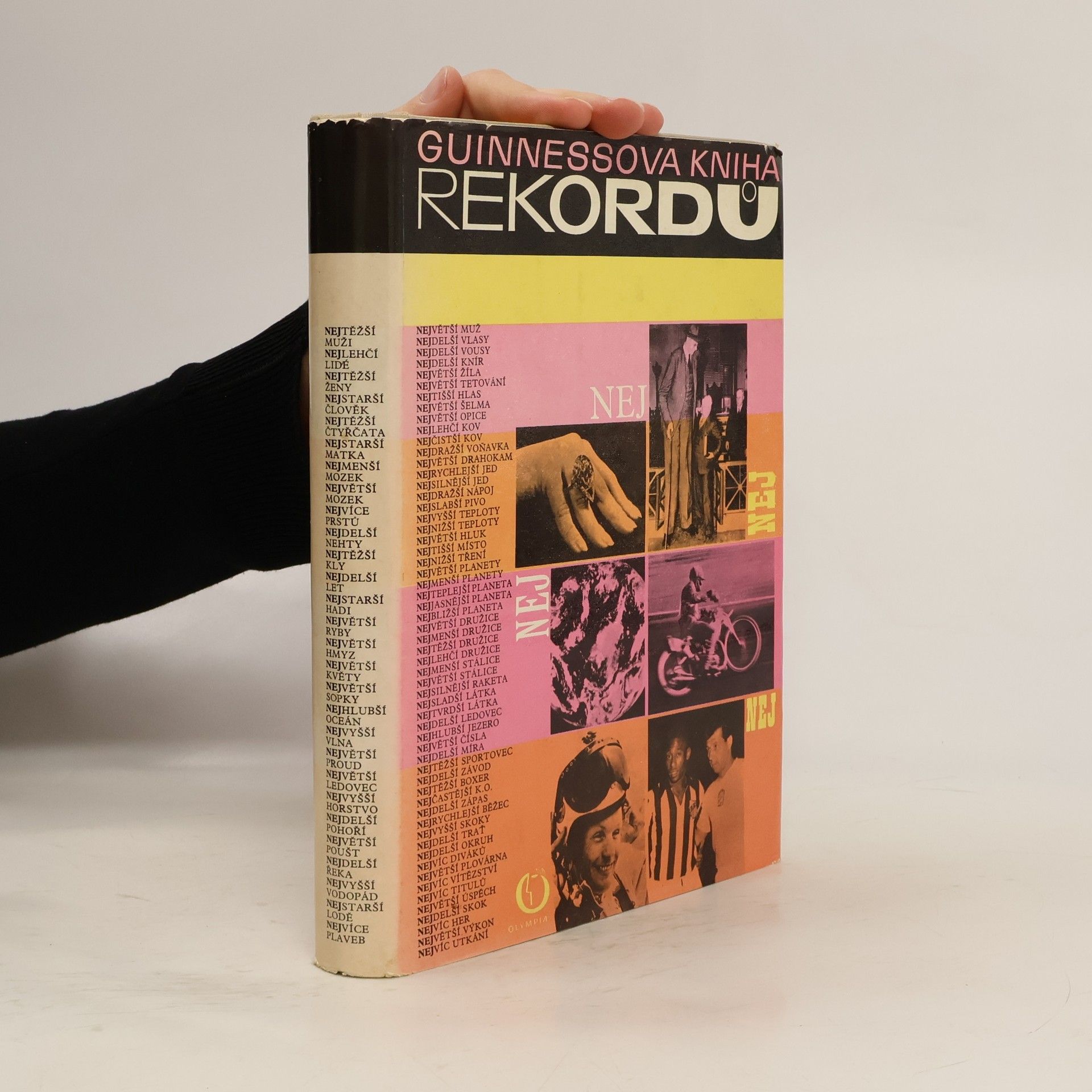 První české vydání Guinnessových rekordů. Obsahově pestrá encyklopedie podává přehled zajímavostí a kuriozit z nejrůznějších oborů. Ve dvanácti tématických kapitolách jsou zachyceny stovky rekordů i "rekordů" ze světa člověka i přírody, z dobývání kosmu, z oblasti vědy,umění, zábavy, techniky aj. Zdaleka nejobsáhlejší je kapitola o sportu a hrách, v níž jsou kromě všeobecných údajů o známých i méně známých druzích sportu zaznamenány i nejlepší dosažené sportovní výsledky.