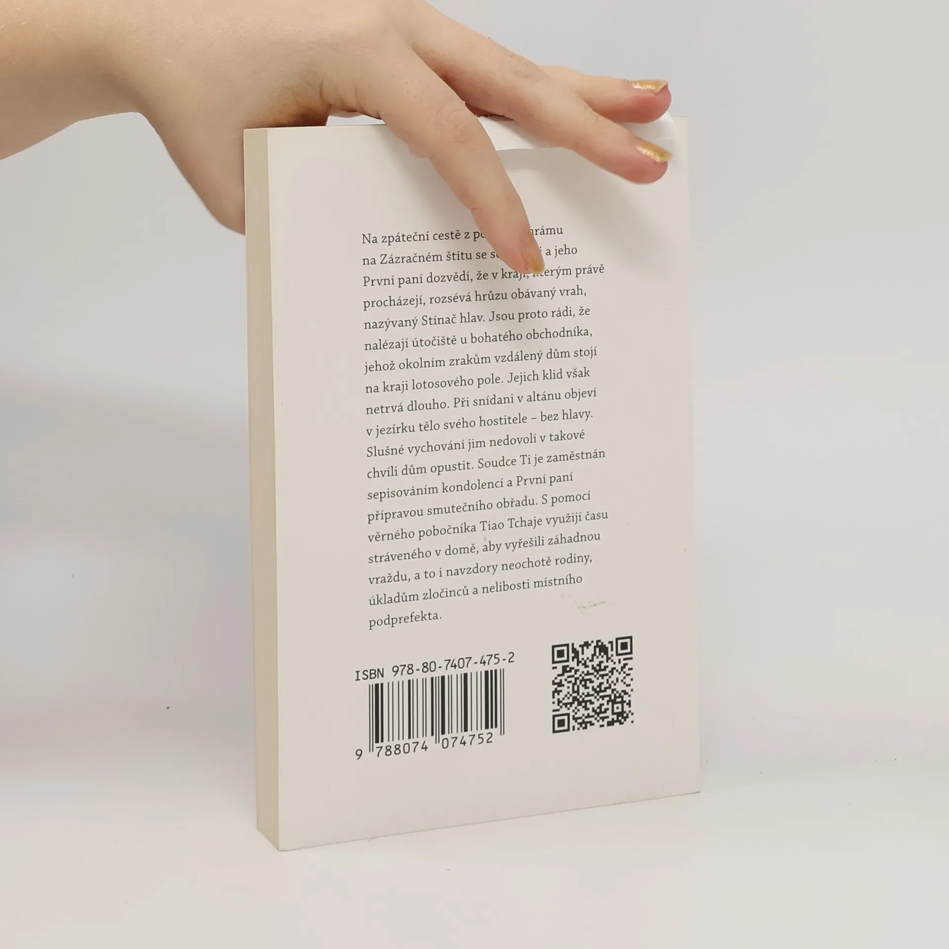 Na zpáteční cestě z poutní cesty ke chrámu Vznešeného vrcholu se soudce Ti a jeho První paní dozvědí, že v kraji, kterým právě procházejí, rozsévá hrůzu obávaný vrah, nazývaný Sekáč hlav. Jsou proto rádi, že nalézají útočiště u bohatého obchodníka, jehož okolním zrakům vzdálený dům stojí na kraji lotosového pole. Jejich klid netrvá však dlouho. Při snídani v pavilónu objeví v jezírku tělo jejich hosta – bez hlavy. Slušné vychování jim nedovolí vzdálit se v takové chvíli z domu. Soudce Ti je zaměstnán sepisováním kondolencí a První paní přípravou smutečního obřadu. S pomocí věrného pobočníka Tiao Tchaje využijí času stráveného v domě, aby vyřešili záhadnou vraždu, navzdory neochotě rodiny a překážkám zločinců a neochoty místního podprefekta.