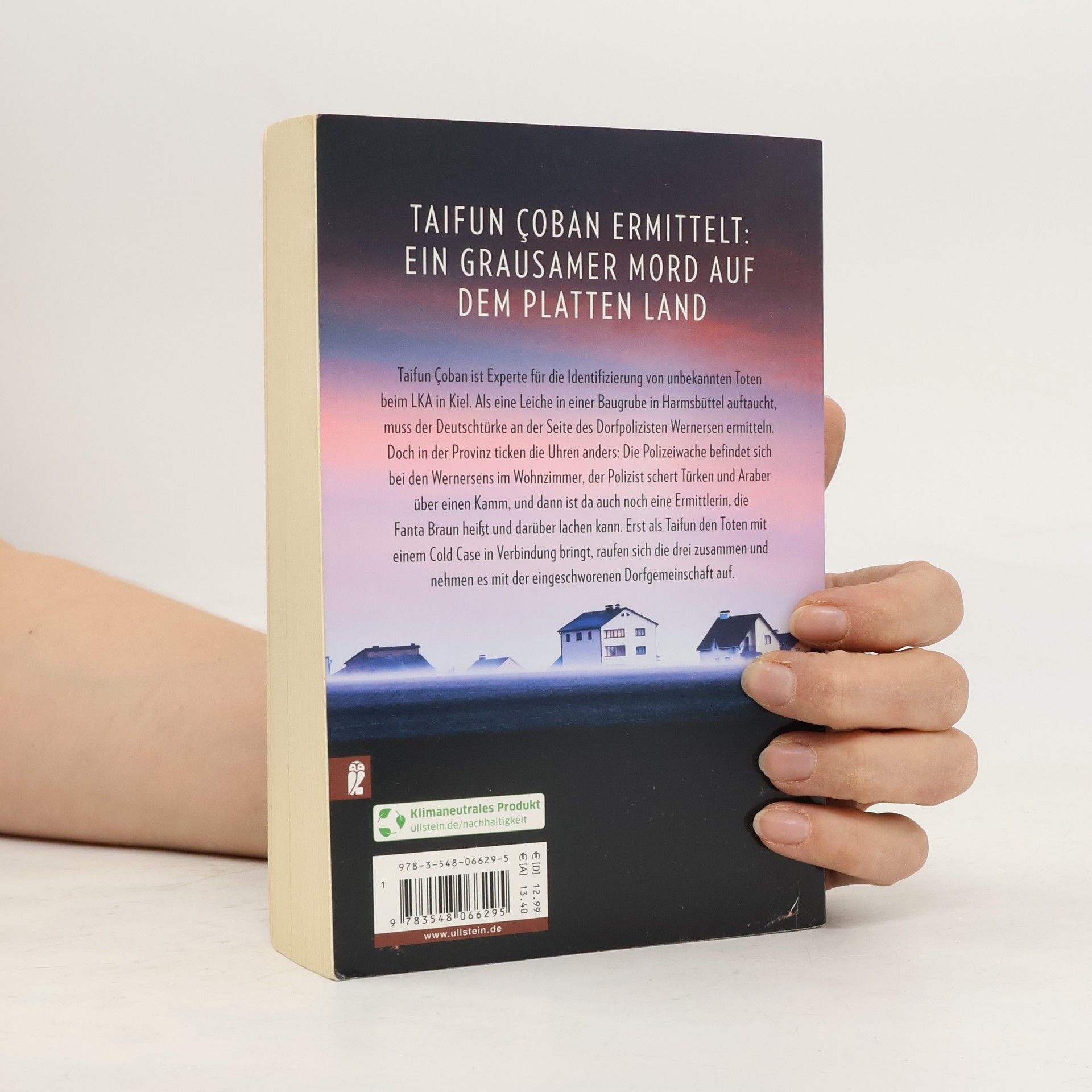 Dieser Kommissar hat Kultpotential Taifun Çoban arbeitet als Experte beim LKA in Kiel. Der 42-jährige Deutschtürke ist auf die Identifizierung von Toten spezialisiert. Als er nach Harmsbüttel gerufen wird, um an der Seite des Dorfpolizisten Wernersen zu ermitteln, weiß er nicht so genau, was er davon halten soll. Die Polizeiwache nebst Poststation bei den Wernersens im Wohnzimmer? Ein Polizist, der Türken und Araber über einen Kamm schert? Eine Polizistin, die Fanta Braun heißt und darüber lachen kann? Doch dann kommt Bewegung in den Fall rund um den Toten aus der Baugrube, denn Taifun kann ihn identifizieren und mit einem Cold Case in Verbindung bringen. Und – getragen von Wernersens Ortskenntnis und Fantas Humor, – nimmt er es mit der eingeschworenen Dorfgemeinschaft auf. Kommissar Çoban, Dorfpolizist Wernersen und die unschlagbare Fanta Braun ermitteln auf dem platten Land