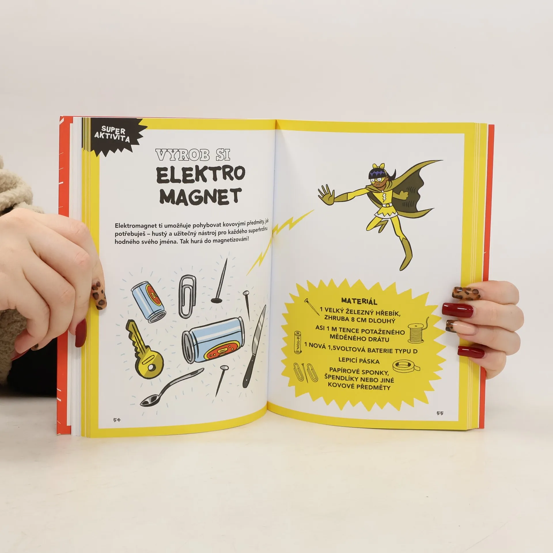 Intenzivní superhrdinský kurz! Čeká na tebe 20 aktivit, které zvýší tvoje superschopnosti a pomůžou ti zachránit svět! Pomocí podrobných návodů s vtipnými obrázky si můžeš vyrobit třeba speciální štít, zrcadlo neviditelnosti, páchnoucí bomby, elektromagnet, imobilizér, naučit se tajnou řeč šifer a nakonec si všechny svoje nadpřirozené schopnosti otestovat! Dokážeš chodit po vejcích? Zmáčknout plechovku? Překonat gravitaci? Když projdeš zkouškou, čeká tě certifikát, supersamolepky a zářná superhrdinská budoucnost.