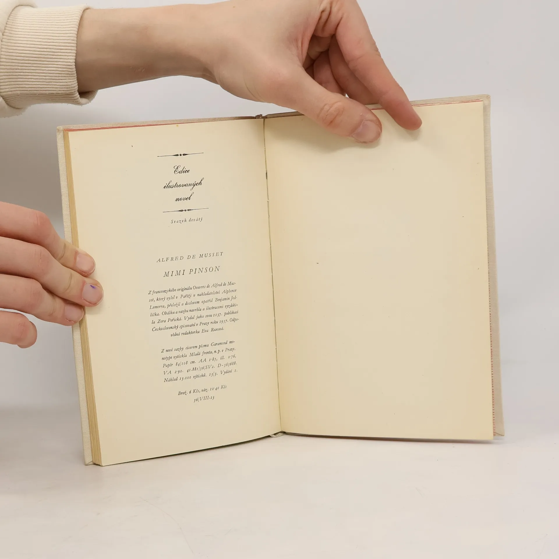 Půvabná novela Mimi Pinson, která uvádí dnešního čtenáře do bezstarostného světa pařížských studentů z devatenáctého století a která s hlubokým citovým porozuměním vypráví o dobrém srdci chudičké grisetky. Skvěle je vykresleno prostředí Latinské čtvrti s veselou bídou bujnýmižerty, mladou láskou a mladým zklamáním. A tak i Mimi Pinson je zrcadlem své doby, a přes svůj křehký půvab a rozmarnost zrcadlem pravdivým.