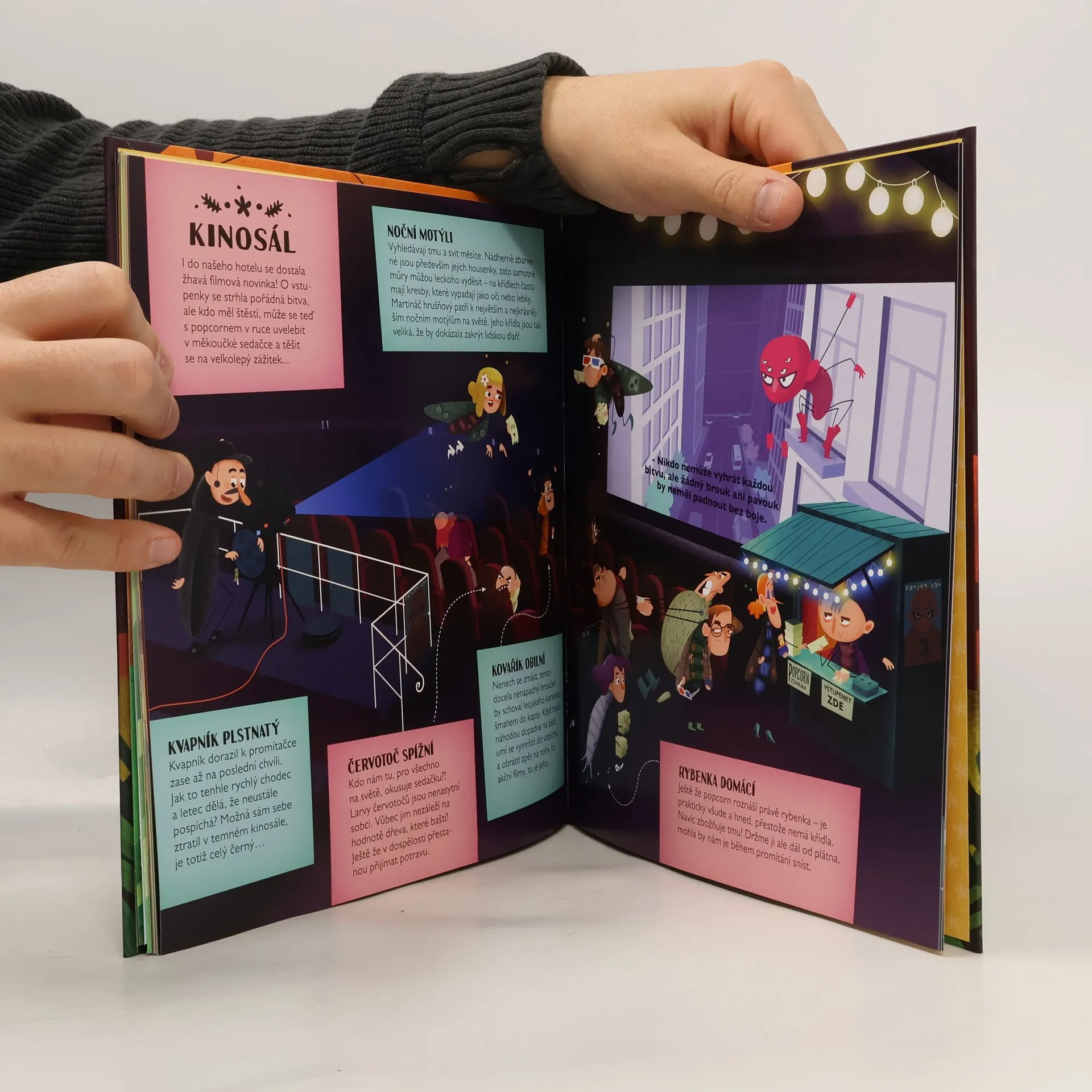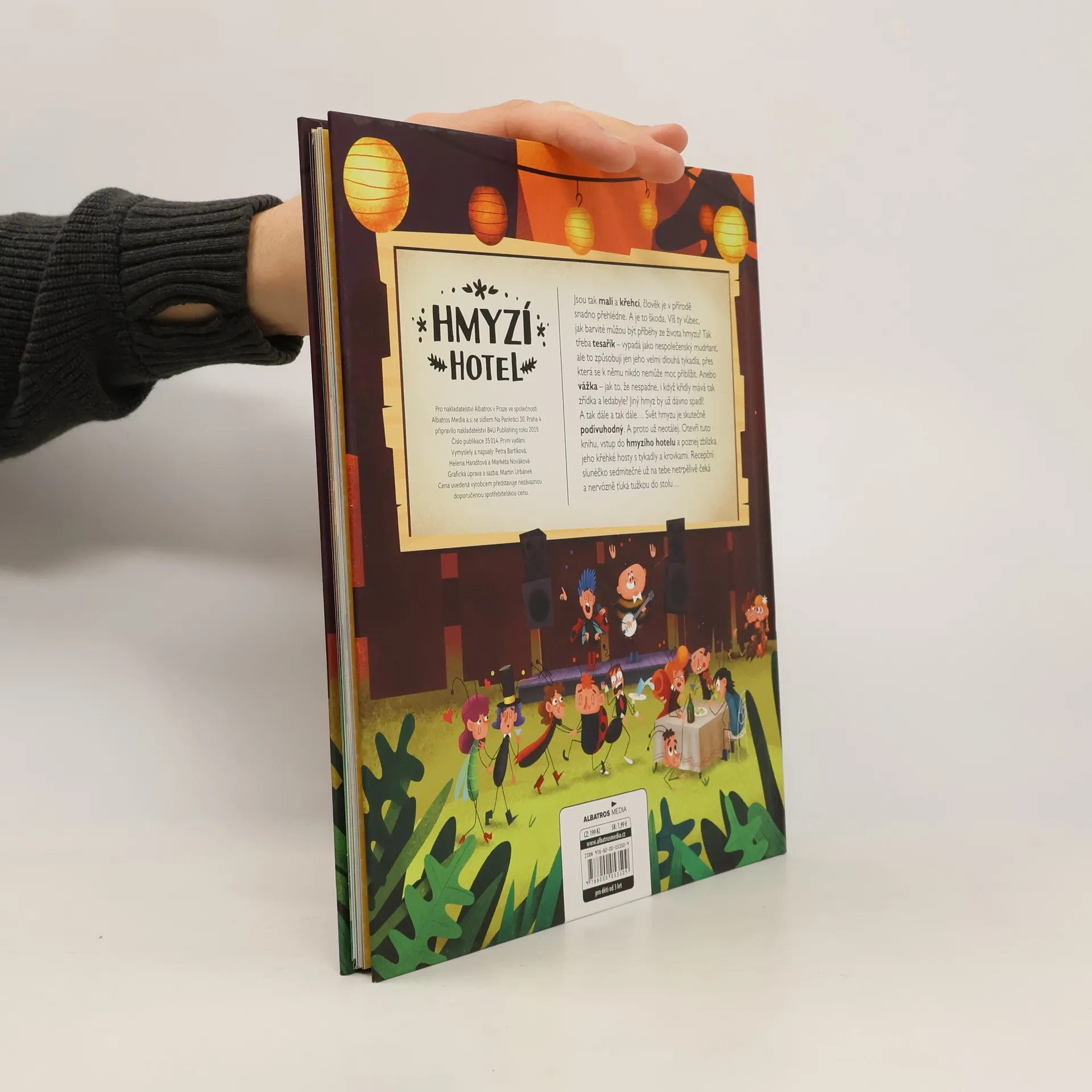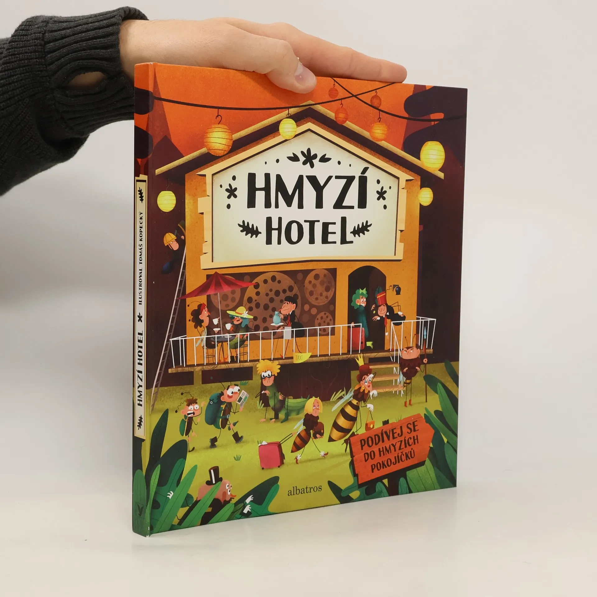 Jsou tak malí a křehcí, člověk je v přírodě snadno přehlédne. A je to škoda. Víš ty vůbec, jak barvité můžou být příběhy ze života hmyzu? Tak třeba tesařík – vypadá jako nespolečenský mudrlant, ale to způsobují jen jeho velmi dlouhá tykadla, přes která se k němu nikdo nemůže moc přiblížit. Anebo vážka – jak to, že nespadne, i když křídly mává tak zřídka a ledabyle? Jiný hmyz by už dávno spadl! A tak dále a tak dále… Svět hmyzu je skutečně podivuhodný. A proto už neotálej. Otevři tuto knihu, vstup do hmyzího hotelu a poznej zblízka jeho křehké hosty s tykadly a krovkami. Recepční slunéčko sedmitečné už na tebe netrpělivě čeká a nervózně ťuká tužkou do stolu…