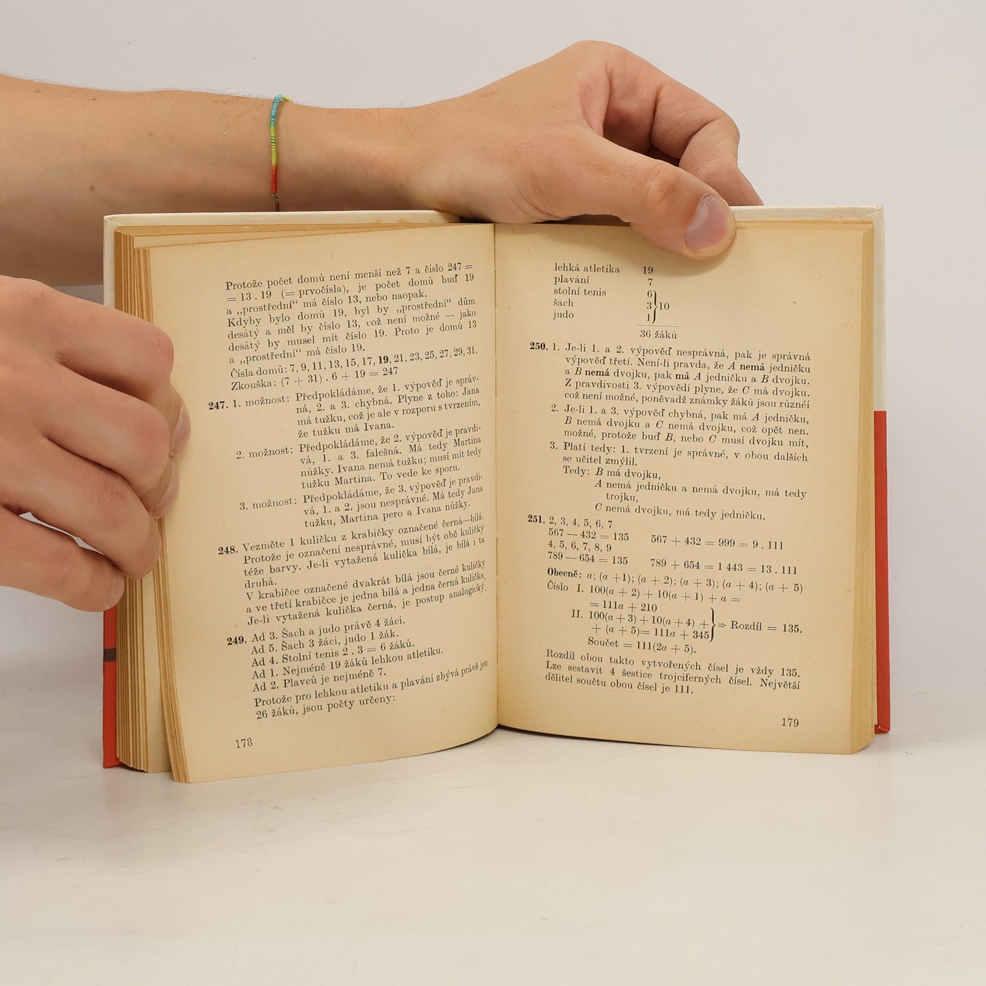 Úlohy řešené postřehem, logickou úvahou a sbírka 630 zajímavých úloh z matematiky je uspořádána podle metod užitých při řešení úloh. V druhé části uvádí výsledky řešení, naznačuje i postupy a podává nejnutnější vysvětlení.