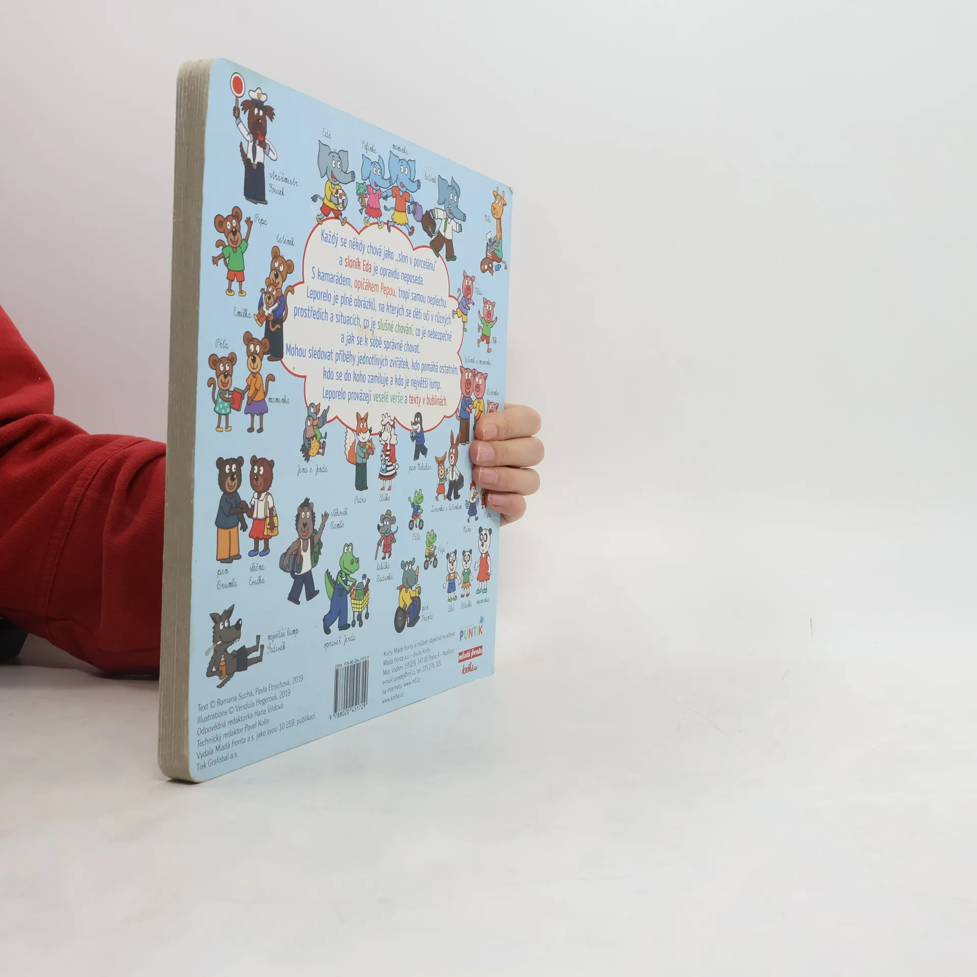 Každý se někdy chová jako ,,slon v porcelánu“ a sloník Eda je opravdový neposeda. S kamarádem, opičákem Pepou, tropí samou neplechu. Leporelo je plné obrázku, na kterých se děti učí v různých prostředích a situacích, co je slušné chování, co je nebezpečné a jak se k sobe správně chovat. Mohou sledovat příběhy jednotlivých zvířátek, kdo pomáhá ostatním, kdo se do koho zamiluje a kdo je největší lump. Leporelo provázejí veselé verše a texty v bublinách.