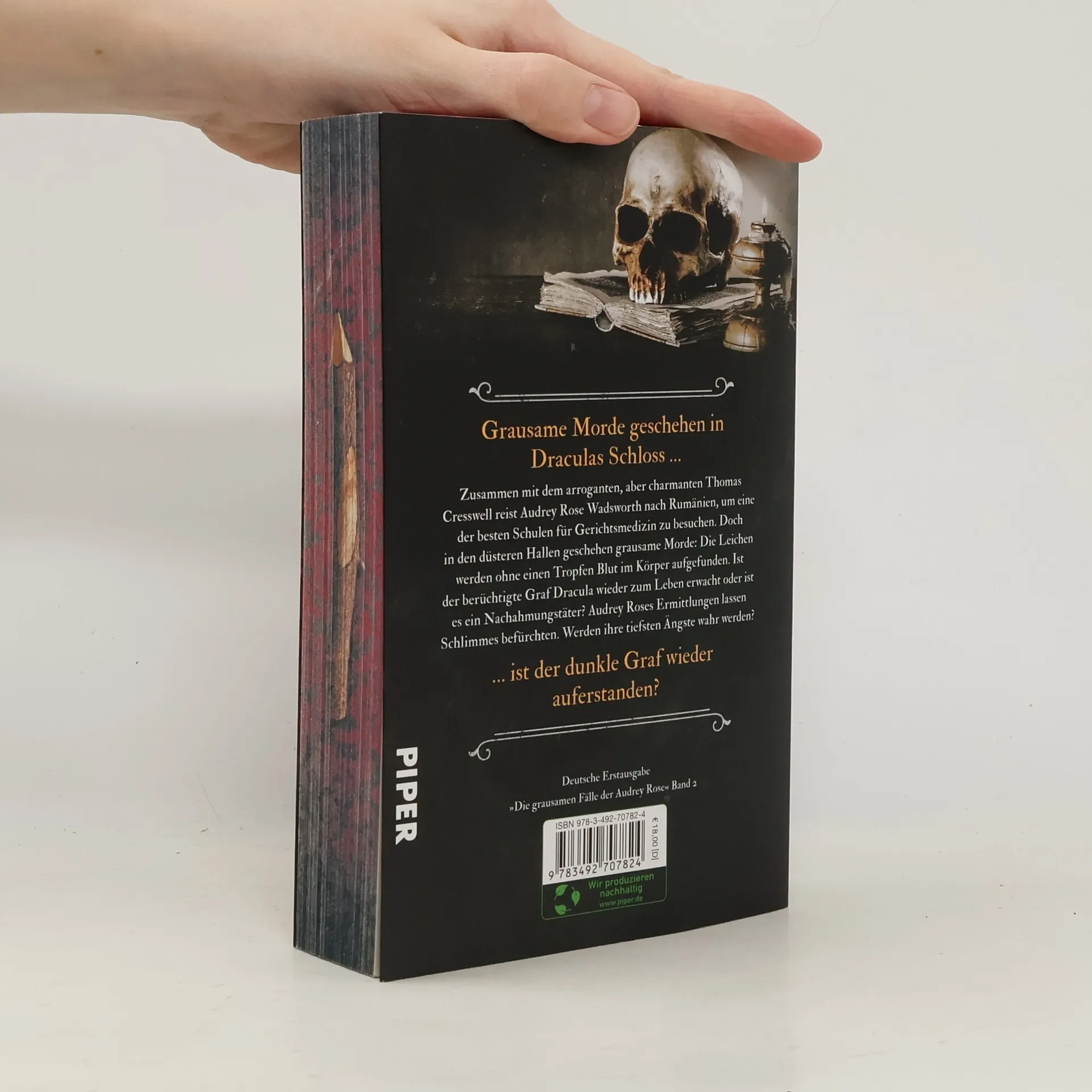 Nachdem Audrey Rose ihren ersten Fall gelöst hat, hat sie keine andere Wahl, als aus London zu fliehen. Zusammen mit dem arroganten, aber charmanten Thomas Cresswell reist sie nach Rumänien, um dort eine der besten Schulen für Gerichtsmedizin in Europa zu besuchen. Doch in den düsteren Hallen der Schule geschehen grausame Morde, und die Leichen werden ohne einen Tropfen Blut im Körper aufgefunden. Schnell stellt sich die Frage: Ist es ein Nachahmungstäter oder ist Vlad, der Pfähler, der berühmte Graf Dracula, wieder auferstanden? Audreys Ermittlungen lassen ihre schlimmsten Ängste wahr werden.