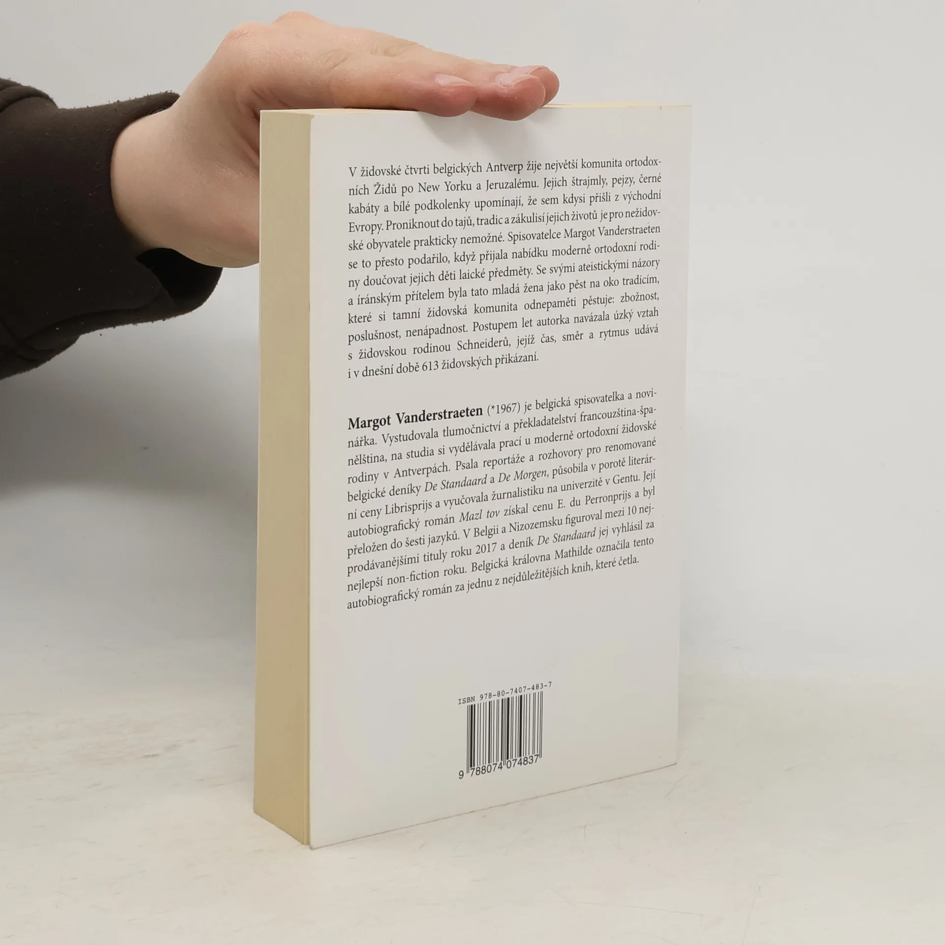 Má léta u ortodoxní židovské rodiny. V židovské čtvrti belgických Antverp žije největší komunita ortodoxních Židů po New Yorku a Jeruzalémě. Jejich štrajmly, pejzy, černé kabáty a bílé podkolenky upomínají, že sem kdysi přišli z východní Evropy. Proniknout do jejich zákulisí, tajů a tradic je pro lidi zvenčí těžké, ne-li nemožné. Novinářce a spisovatelce Margot Vanderstraeten se to podařilo. Za léta, kdy v moderně ortodoxní židovské rodině jako studentka doučovala děti, si vybudovala pevné přátelství s rodinou Schneiderů, a nakoukla do světa, jehož čas, směr i rytmus i v moderní době udává 613 židovských přikázaní. Díky jejímu čtivému vyprávění se tak dozvíme, proč židovské ženy v Antverpách nosí na hlavách paruky, že každá věřící židovská rodina má dvě separátní kuchyně a jak jsou důležité dohazovačky sňatků. Podíváme se jejíma očima i do ortodoxních komunit v New Yorku a Jeruzalémě, kde autorka některé židovské přátele nadále navštěvuje poté, co odešli z Antverp. V Belgii a Nizozemsku figuroval Mazl tov mezi 10 nejprodávanějšími tituly roku 2017, deník De Standaard jej vyhlásil za nejlepší non-fiction roku a belgická královna Mathilde tento autobiografický román označila za jednu z nejdůležitějších knih.