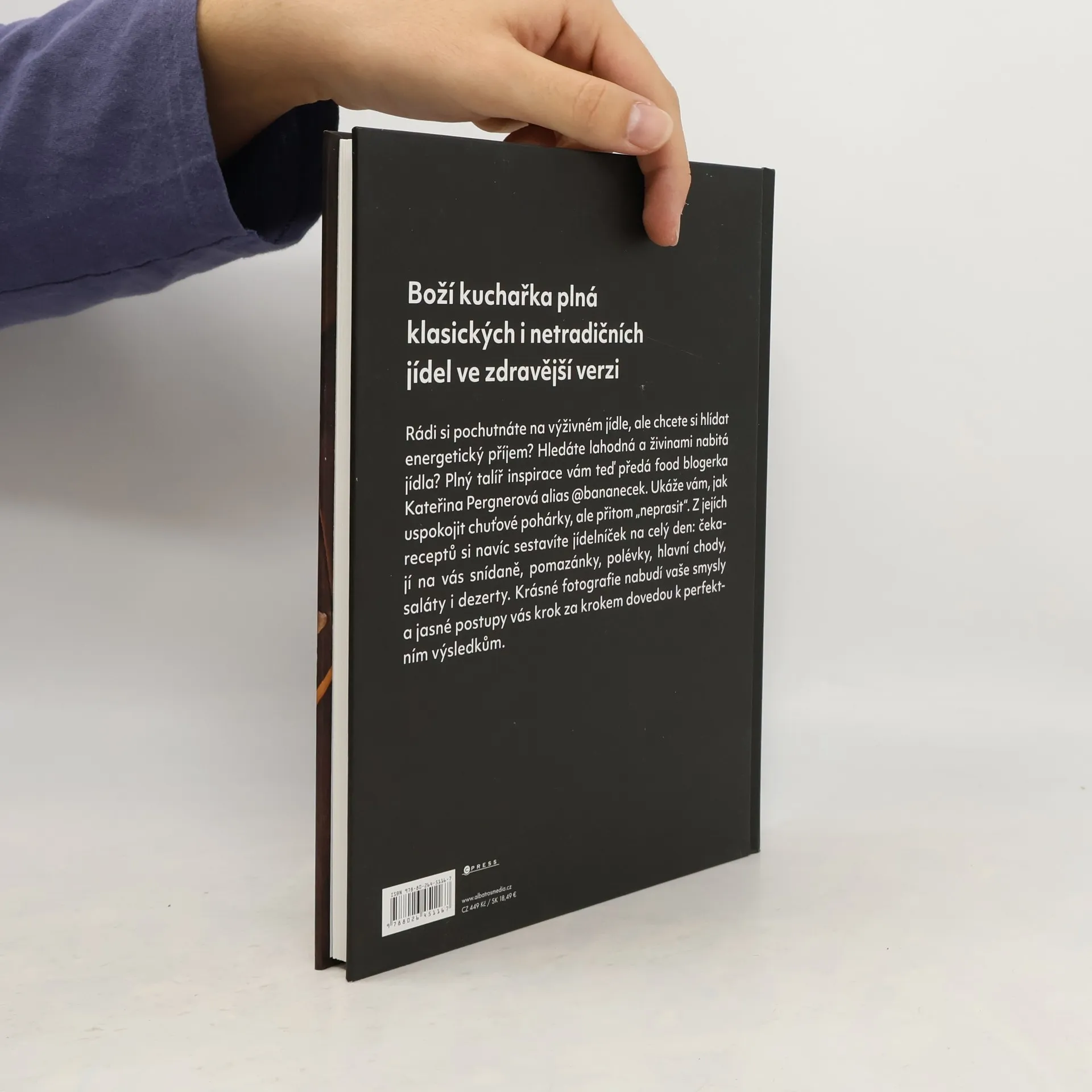 Rádi si pochutnáte na výživném jídle, ale chcete si hlídat energetický příjem? Hledáte lahodná a živinami nabitá jídla? Plný talíř inspirace vám teď předá food blogerka Kateřina Pergnerová alias @bananecek. Ukáže vám, jak uspokojit chuťové pohárky, ale přitom „neprasit“. Z jejích receptů si navíc sestavíte jídelníček na celý den: čekají na vás snídaně, pomazánky, polévky, hlavní chody, saláty i dezerty. Krásné fotografie nabudí vaše smysly a jasné postupy vás krok za krokem dovedou k perfektním výsledkům.
