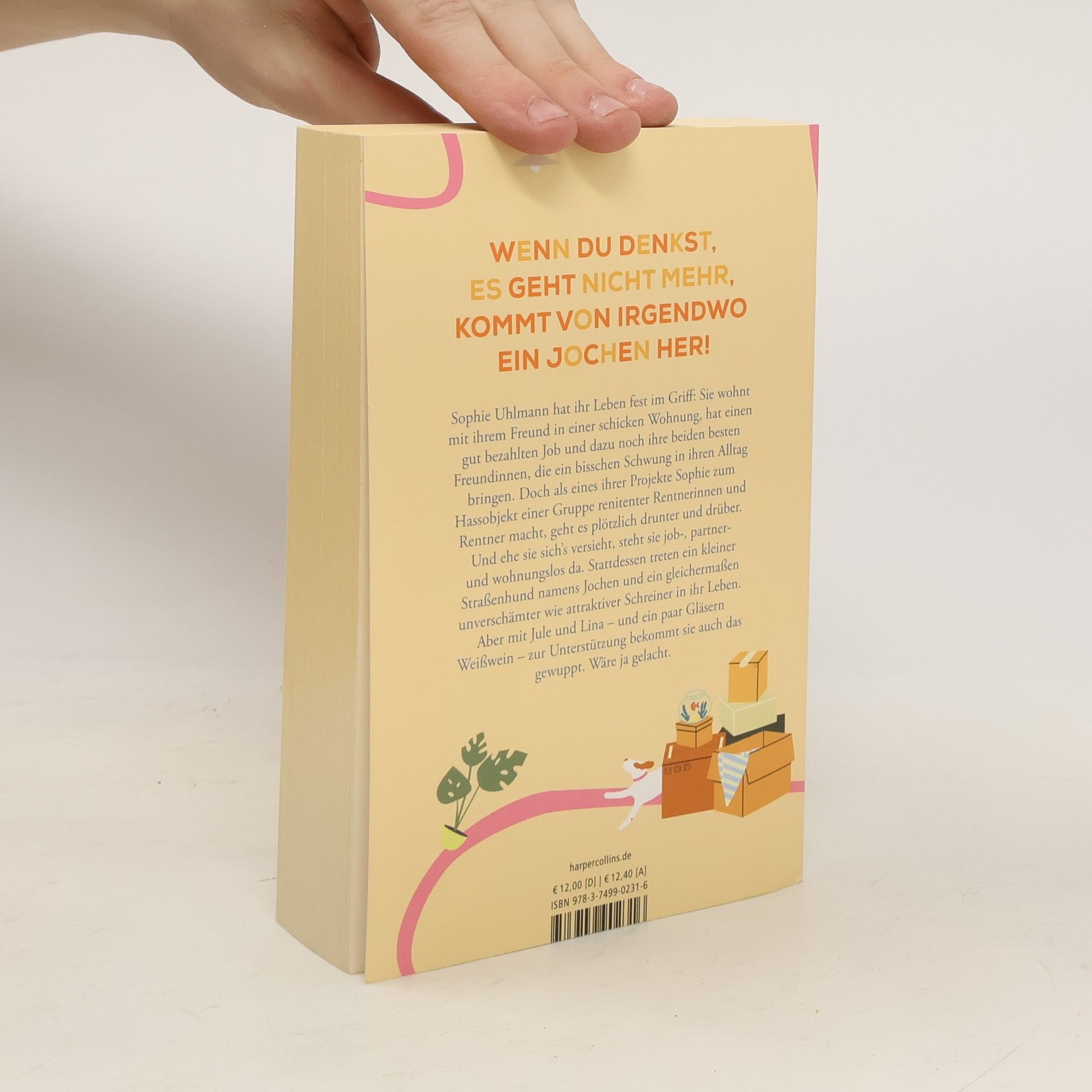 Wenn du denkst, es geht nicht mehr, kommt von irgendwo ein Jochen her! Sophie Uhlmann hat ihr Leben fest im Griff: Sie wohnt mit ihrem Freund in einer schicken Wohnung, hat einen gut bezahlten Job und dazu noch ihre beiden besten Freundinnen, die ein bisschen Schwung in ihren Alltag bringen. Doch als eines ihrer Projekte Sophie zum Hassobjekt einer Gruppe renitenter Rentnerinnen und Rentner macht, geht es plötzlich drunter und drüber, und ehe sie sichs versieht, steht sie job-, partner- und wohnungslos da. Stattdessen treten ein kleiner Straßenhund namens Jochen und ein gleichermaßen attraktiver wie unverschämter Schreiner in ihr Leben. Aber mit Jule und Lina an ihrer Seite – und ein paar Gläsern Weißwein – bekommt sie auch das gewuppt. Wäre ja gelacht.