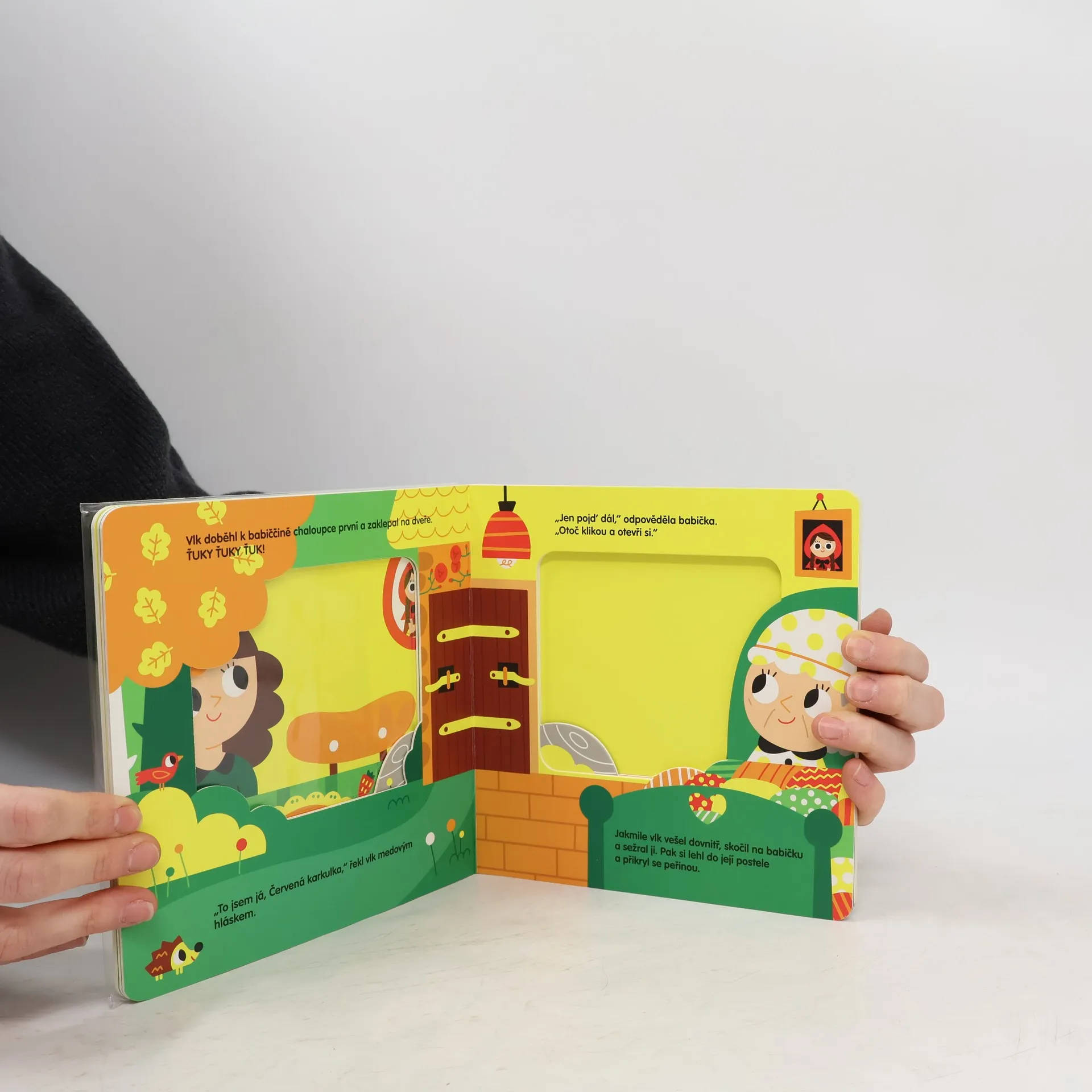 Interaktivní prostorová knížka, kde si mohou rodiče s dětmi nejen přečíst známou pohádku, ale pomocí dvou oboustranných prstových maňásků si příběh i zahrát.