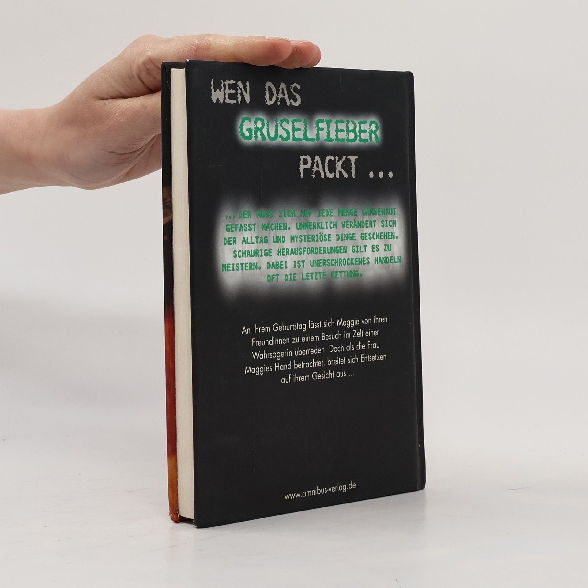 Die Serie „Gruselfieber“ richtet sich an die „Gänsehaut“-Lesergeneration und bietet neuen Thrill für Gruselfans. R. L. Stine schafft eine subtile Atmosphäre des Mysteriösen und Unheimlichen. Bereits zwölf Bände sind in Planung, von denen jeweils drei pro Programm erscheinen werden. Maggie feiert ihren 13. Geburtstag mit ihren besten Freundinnen Jilly, Jacky und Judy auf einer Kirmes. Dort trifft sie ihren heimlichen Schwarm Glen, der ihr zum Geburtstag gratuliert. Die Drillinge überreden Maggie, das Zelt einer Wahrsagerin zu besuchen. Die Vorhersagen der Frau über ihre Wünsche und Träume sind erstaunlich zutreffend, doch als die Wahrsagerin beim Anblick von Maggies Hand schreit und sie hinauswirft, wird die Stimmung unheimlich. Zunächst als Scherz abgetan, geschehen bald merkwürdige Dinge: Judys Kater verhält sich aggressiv gegenüber Maggie, und ihr Kanarienvogel stirbt plötzlich. Maggie hat Angst, dass diese Vorfälle mit ihr zusammenhängen, besonders als ihre Hände bei schlimmen Ereignissen zu kribbeln beginnen. Bei einem Vortanzen geschieht das Unfassbare: Judy wird von einer fremden Macht ergriffen und verletzt sich schwer. Die Freundinnen glauben nun, dass Maggie böse Mächte hat. Nur Glen steht ihr zur Seite und rät ihr, die Drillinge mit einer guten Tat vom Gegenteil zu überzeugen. Maggie meldet sich als Helferin bei einer von Judy organisierten Veranstaltung.
