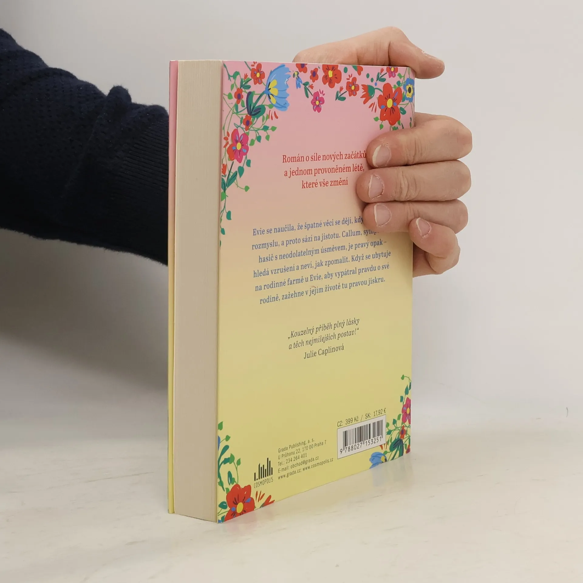 Evie se naučila, že špatné věci se dějí, když jedná bez rozmyslu, a proto sází na jistotu. Callum, sympatický hasič s neodolatelným úsměvem, je pravý opak – hledá vzrušení a neví, jak zpomalit. Když se ubytuje na rodinné farmě u Evie, aby vypátral pravdu o své rodině, zažehne v jejím životě tu pravou jiskru. „Kouzelný příběh plný lásky a těch nejmilejších postav.“ Julie Caplinová
