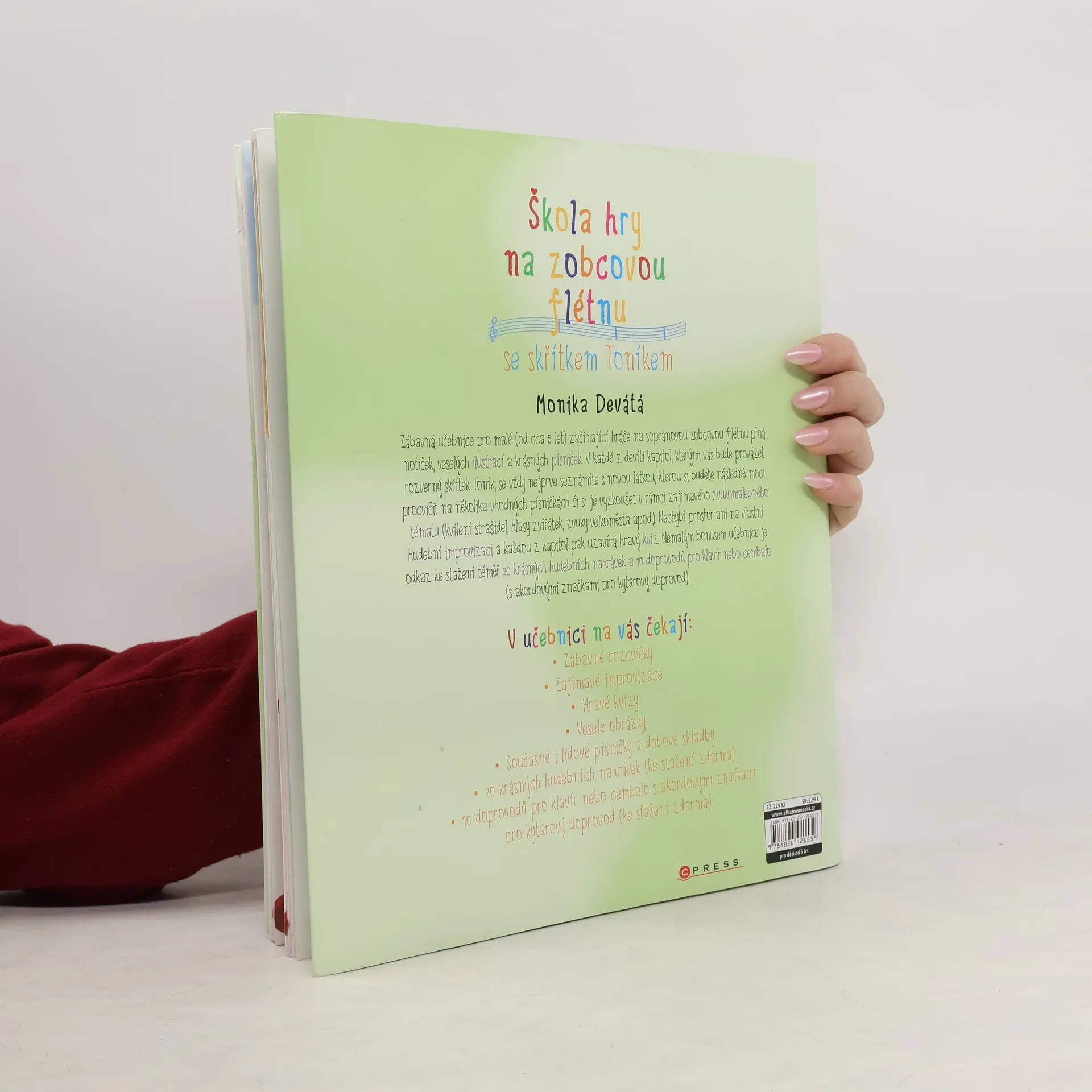 Rozsah a obsah: Se skřítkem Toníkem je hra na flétnu opravdová zábava! Zábavná učebnice pro malé začínající flétnisty (od cca 5 let) plná notiček, veselých ilustrací a krásných písniček. V každé z devíti kapitol, kterými vás bude provázet rozverný hudební skřítek Toník, se vždy nejprve seznámíte s novou látkou, kterou si budete moci procvičit na písničkách v rámci zajímavého zvukomalebného tématu. Nechybí prostor ani na vlastní hudební improvizaci a každou z kapitol pak uzavírá hravý kvíz. Nemalým bonusem učebnice je odkaz ke stažení téměř 20 doprovodných hudebních nahrávek.