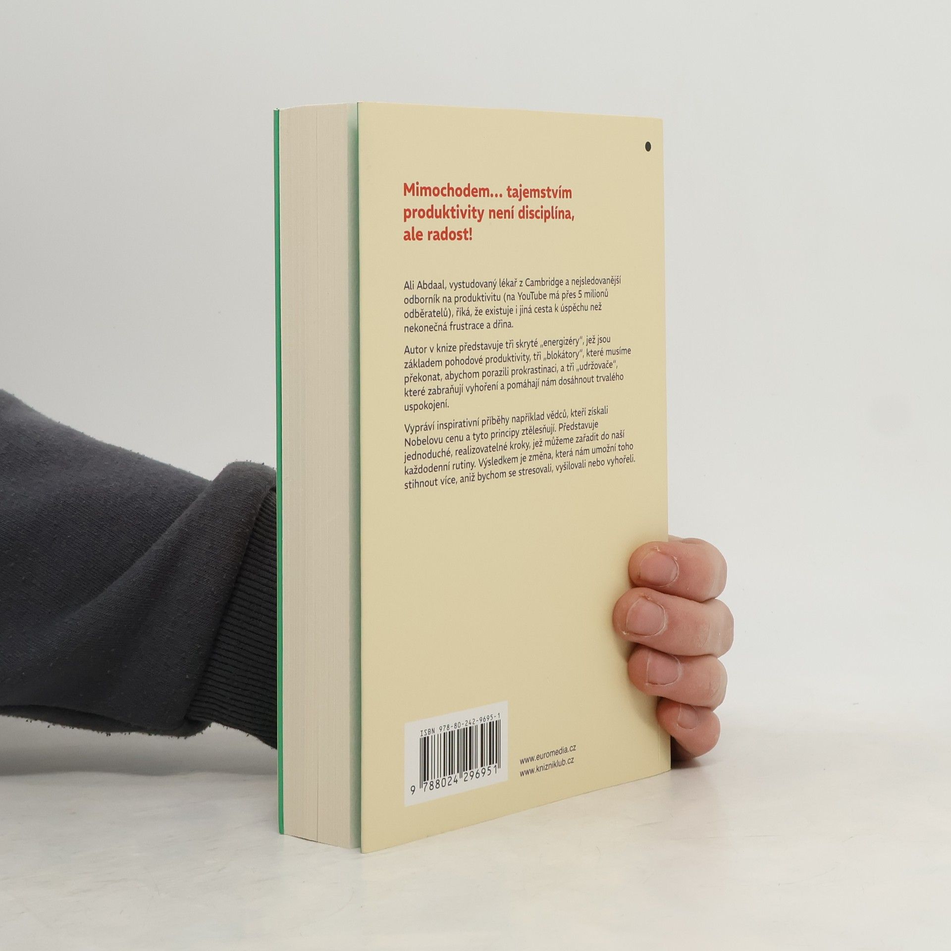 Tajemstvím produktivity není disciplína, ale radost. Ali Abdaal, vystudovaný lékař z Cambridge a nejsledovanější odborník na produktivitu (na YouTube má přes 5 milionů odběratelů) říká, že existuje i jiná cesta k úspěchu než nekonečná frustrace a dřina. Autor v knize představuje tři skryté "energizéry", které jsou základem pohodové produktivity, tři "blokátory", které musíme překonat, abychom porazili prokrastinaci, a tři "udržovače", které zabraňují vyhoření a pomáhají nám dosáhnout trvalého uspokojení. Vypráví inspirativní příběhy například vědců, kteří získali Nobelovu cenu a kteří tyto principy ztělesňují. Představuje jednoduché, realizovatelné kroky, které můžeme zařadit do naší každodenní rutiny. Výsledkem je změna, která nám umožní toho stihnout více, aniž bychom se stresovali, vyšilovali nebo vyhořeli.