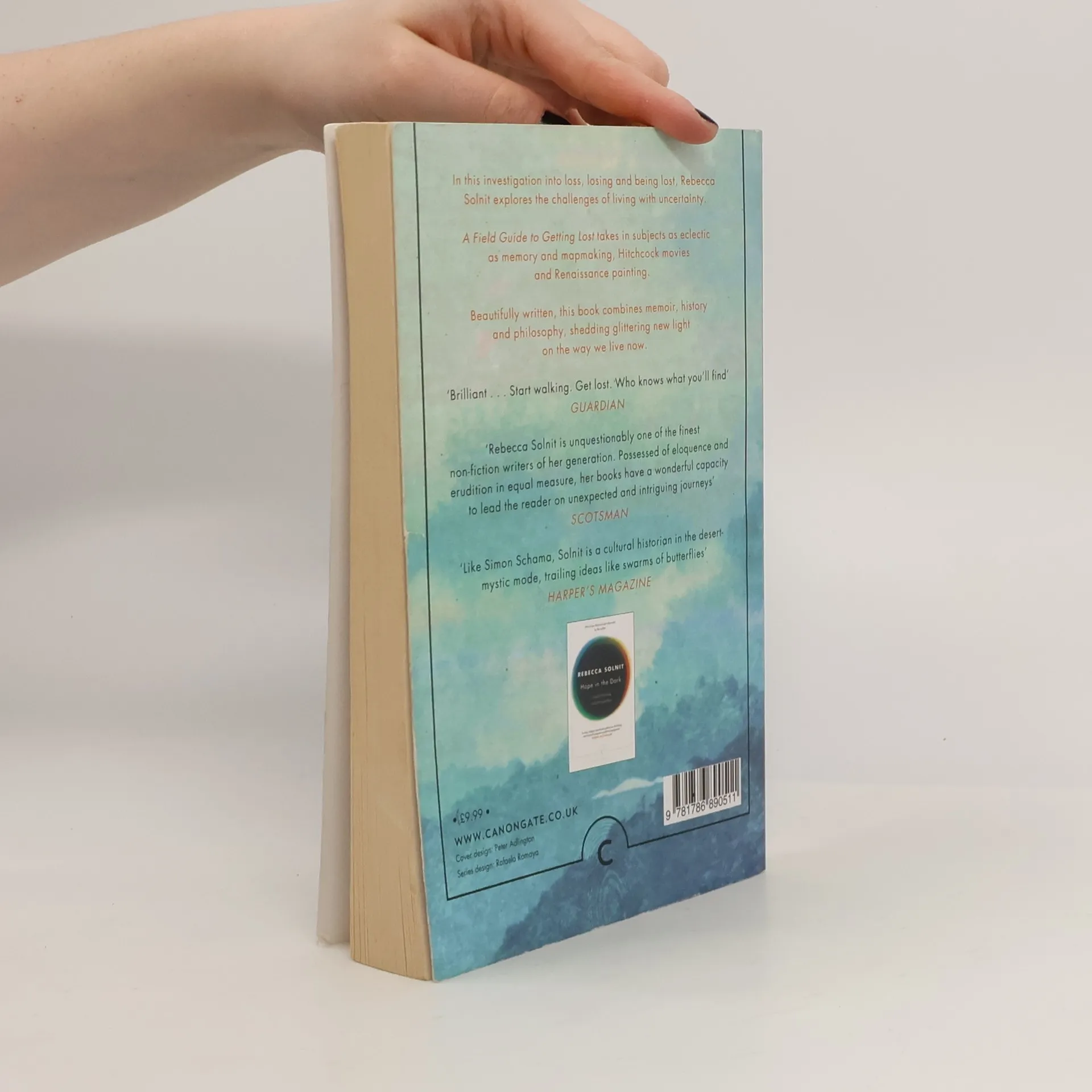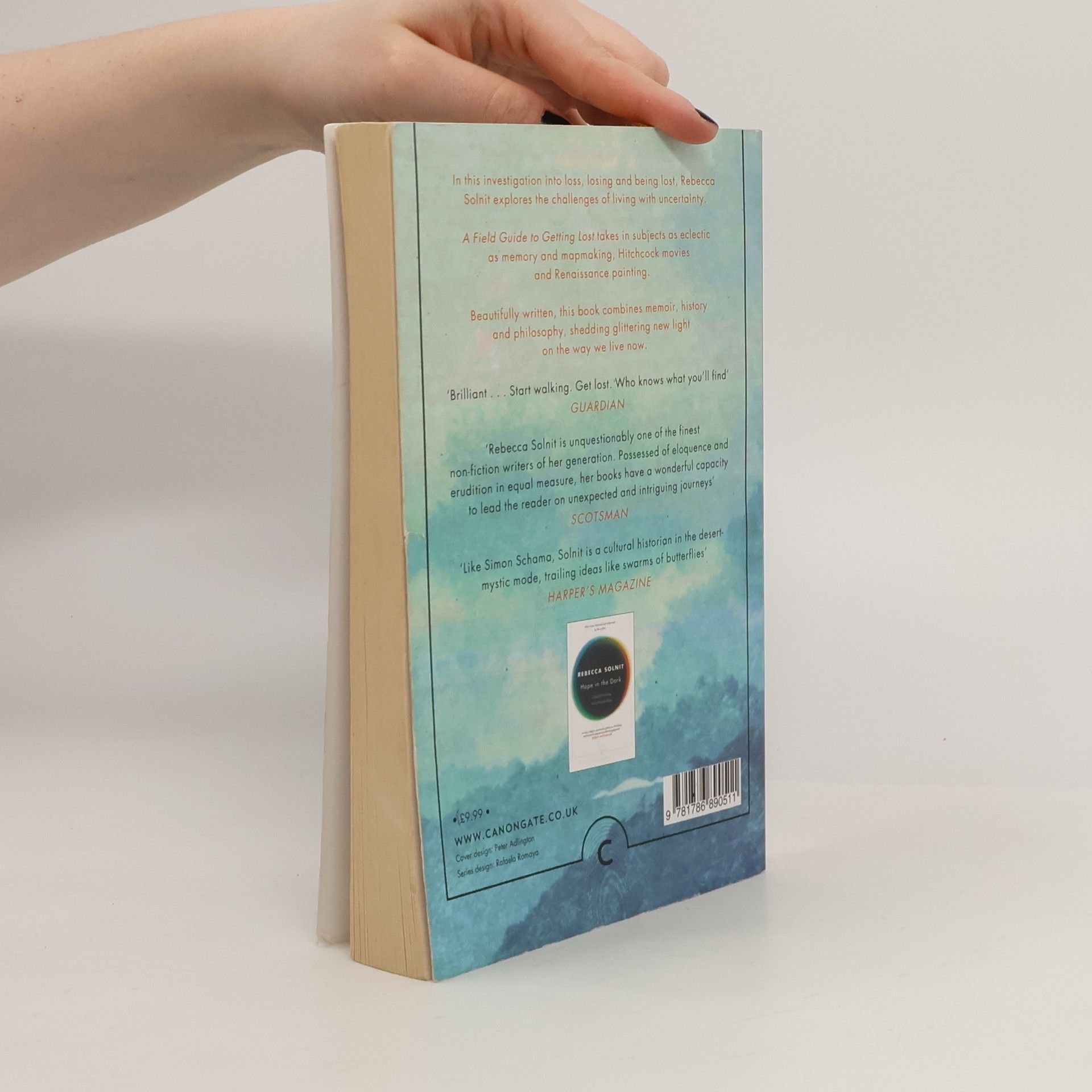 "In this investigation into loss, losing and being lost, Rebecca Solnit explores the challenges of living with uncertainty. A Field Guide to Getting Lost takes in subjects as eclectic as memory and mapmaking, Hitchcock movies and Renaissance painting, Beautifully written, this book combines memoir, history and philosophy, shedding glittering new light on the way we live now."-- Provided by publisher