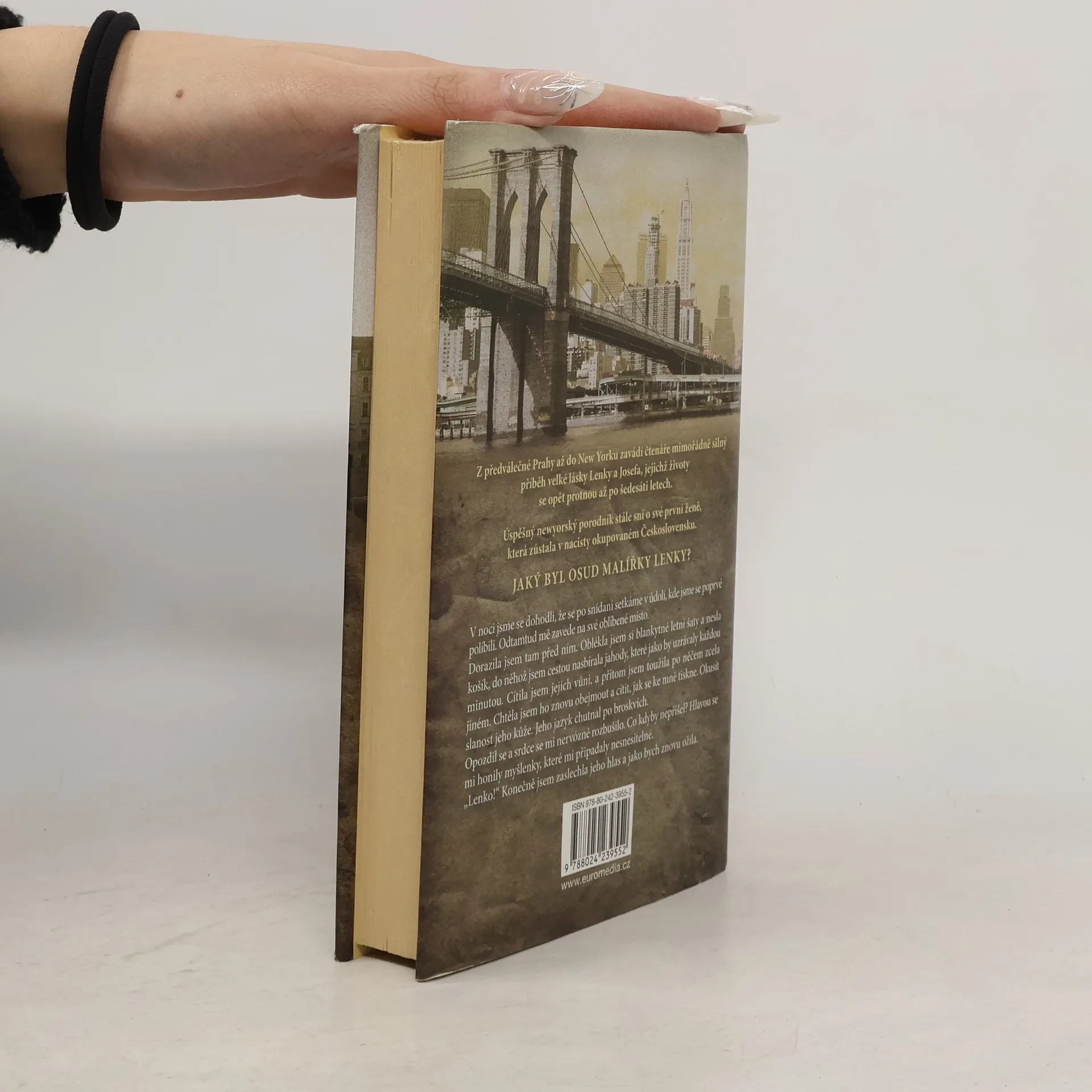 Z předválečné Prahy až do New Yorku zavádí čtenáře mimořádně silný příběh velké lásky Lenky a Josefa, jejichž vztah měl nečekané rozuzlení. Úspěšný newyorský porodník stále sní o své první ženě Lence, která zůstala v nacisty okupovaném Československu. Lenka Maizelová žila v milující, dobře situované pražské rodině, a když se dostala na Akademii výtvarných umění, splnil se jí životní sen. Zvláště od chvíle, kdy se zamilovala do nadějného studenta medicíny Josefa, s důvěrou hleděla do budoucnosti. Jenže napětí v Československu narůstalo a báječný život v předválečné Praze se změnil v noční můru ghett a koncentráků. Jaký byl osud malířky Lenky? Svede osud dávnou dvojici opět dohromady?